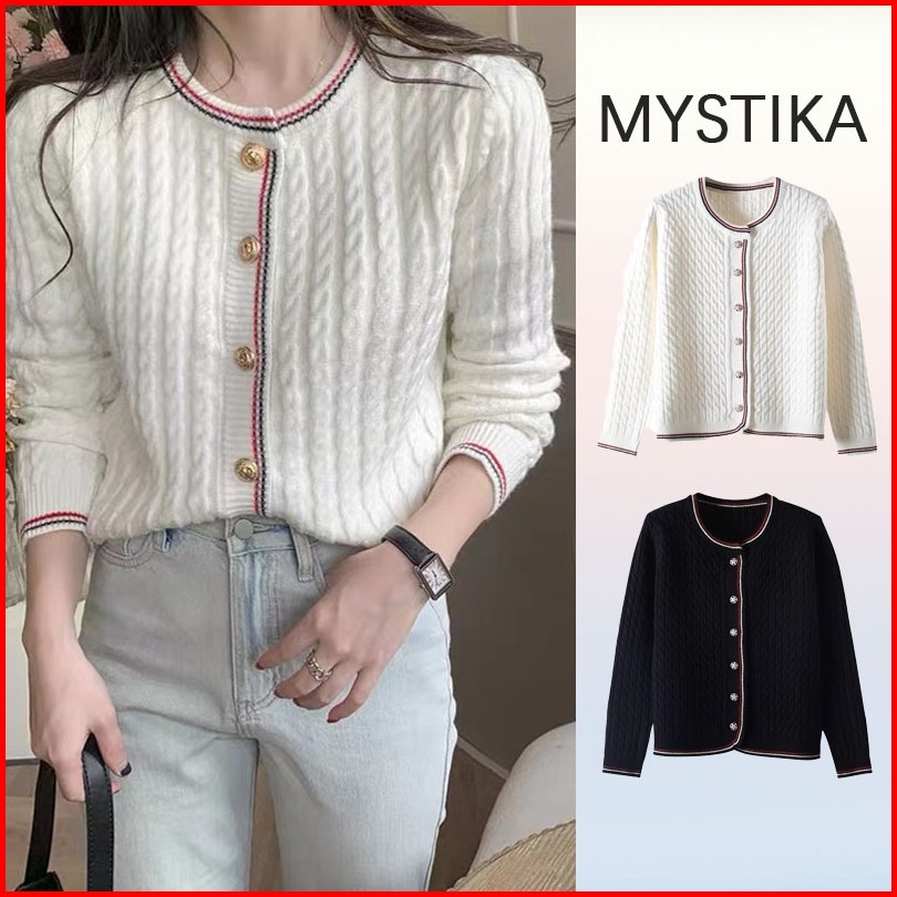 Mystika Gaya Baru Kardigan Angin Harum Kecil Mantel Wanita Rajut Atasan Pendek Lembut Jepang