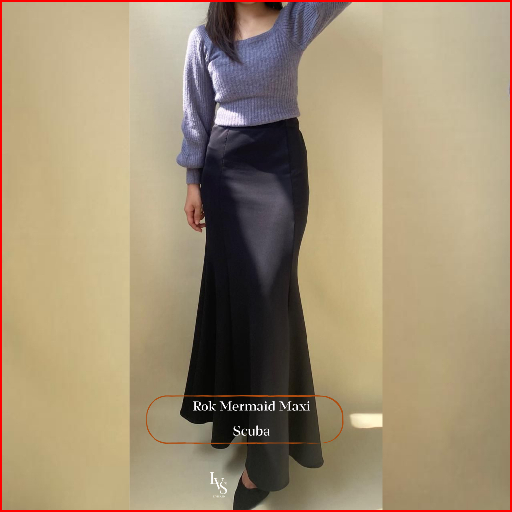 Livisa.id Mermaid Skirt -rok Wanita Scuba Premium Maxi Skirt
