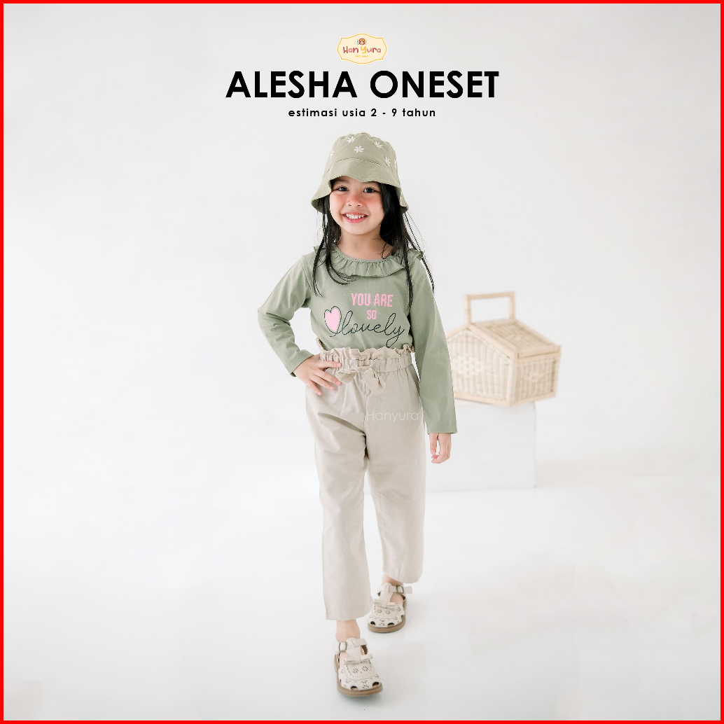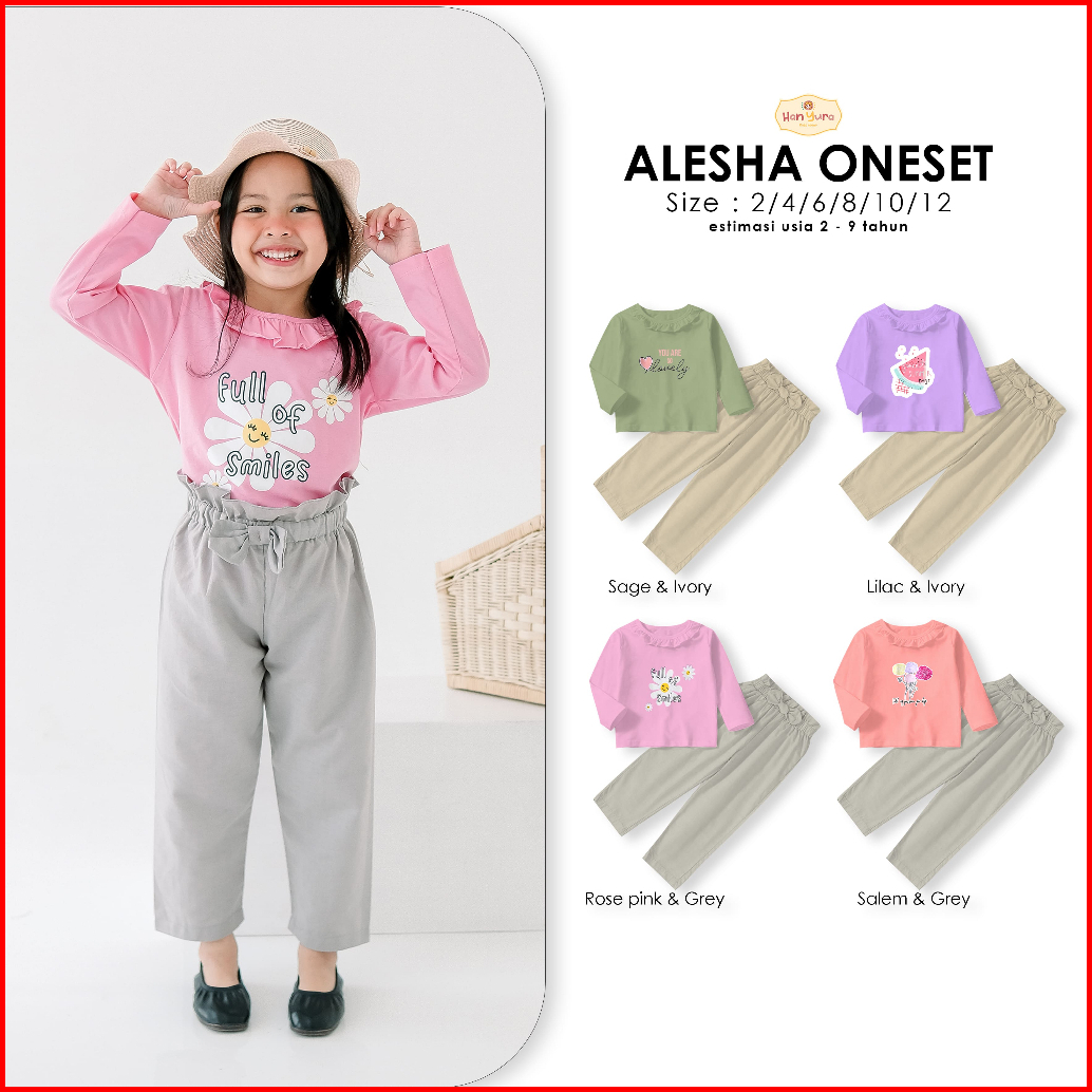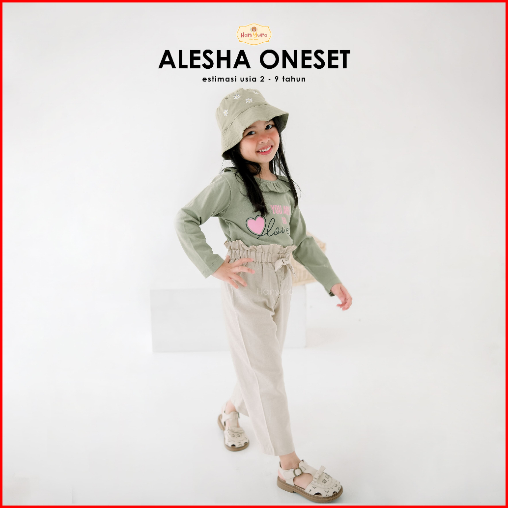 Han Yura Oneset Alesha One Set Setelan Baju Tunik Celana Anak Perempuan Untuk Usia 2-13 Tahun