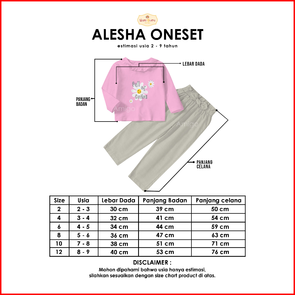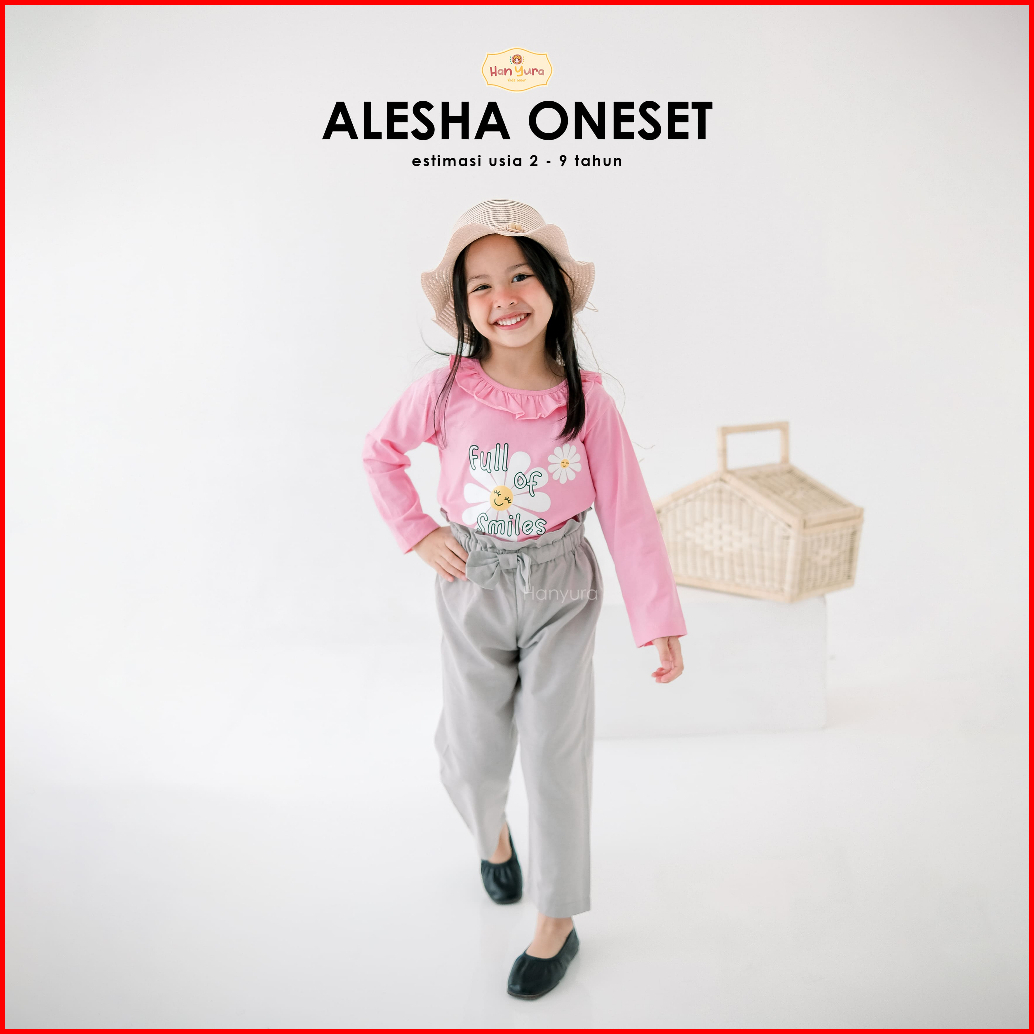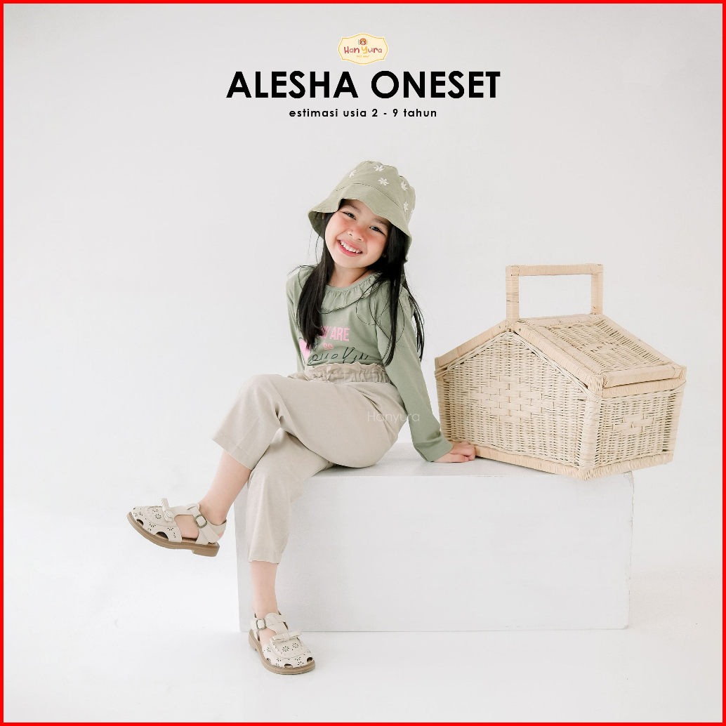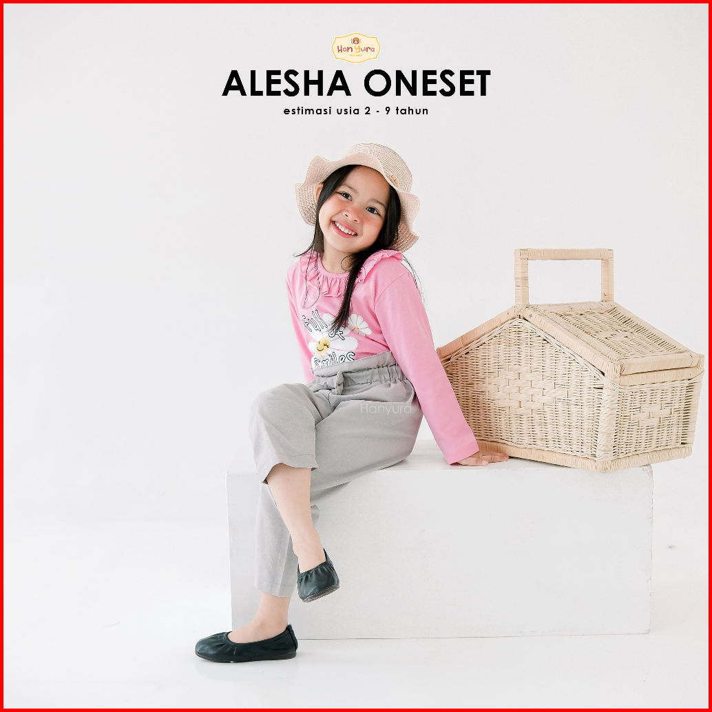 Han Yura Oneset Alesha One Set Setelan Baju Tunik Celana Anak Perempuan Untuk Usia 2-13 Tahun