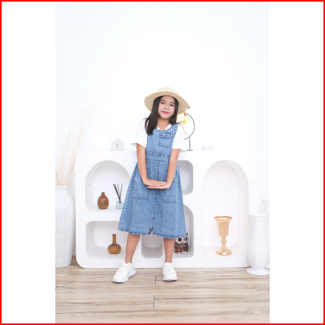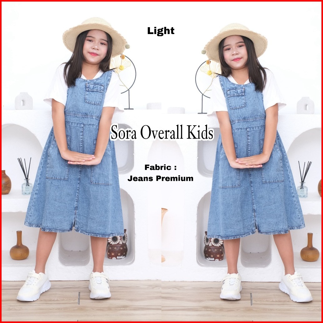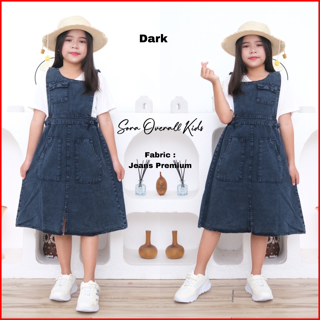 Sora Overall Kids Jumsuit Rok Jeans Anak Perempuan Kekinian Korean Style Bahan Jeans Premium Nyaman Size 3-7 Tahun