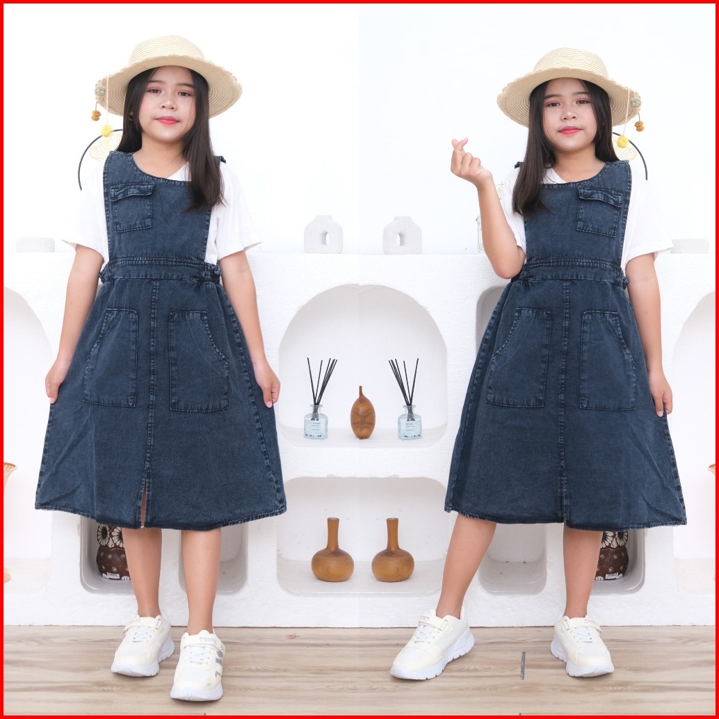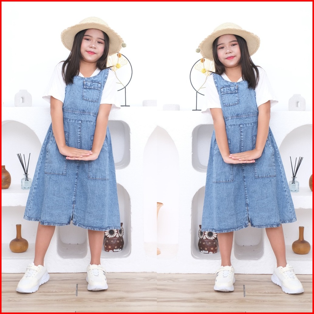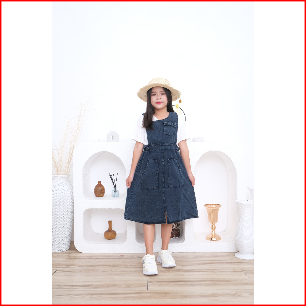 Sora Overall Kids Jumsuit Rok Jeans Anak Perempuan Kekinian Korean Style Bahan Jeans Premium Nyaman Size 3-7 Tahun