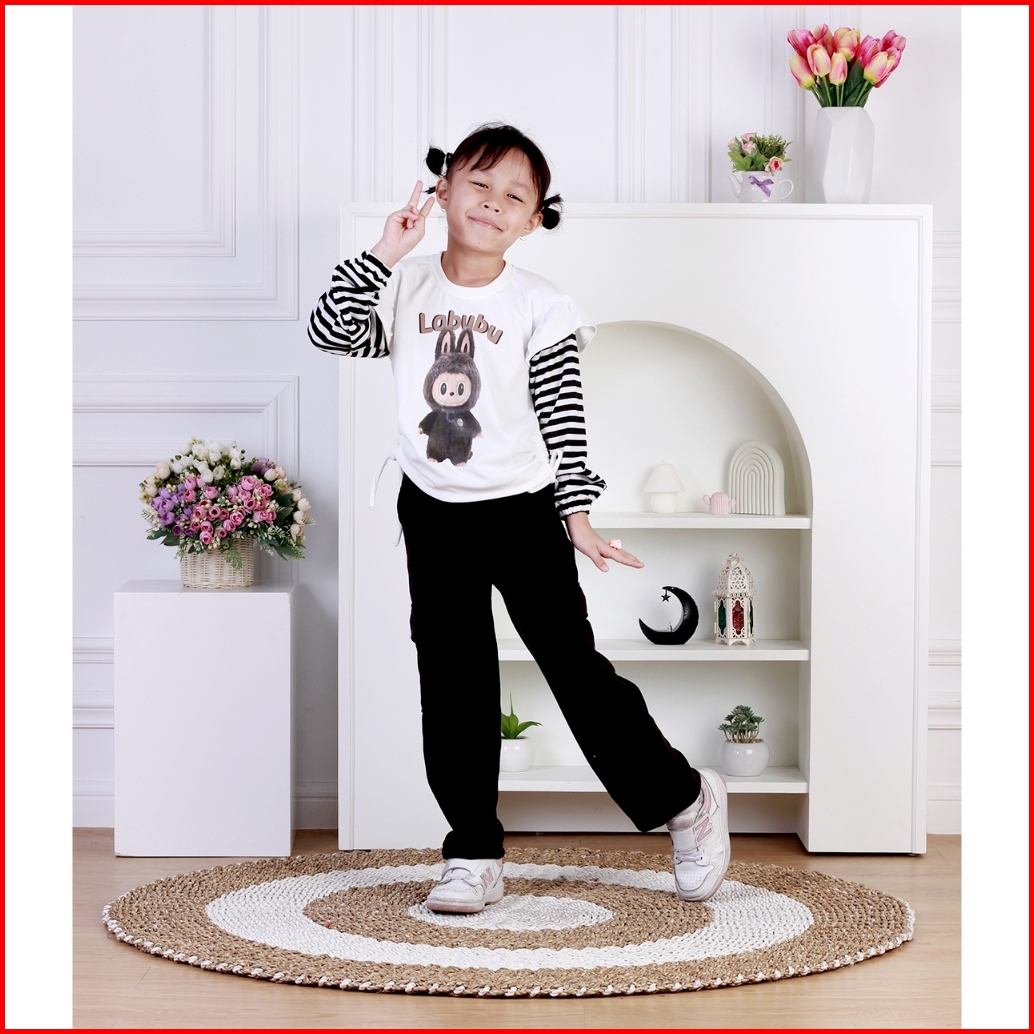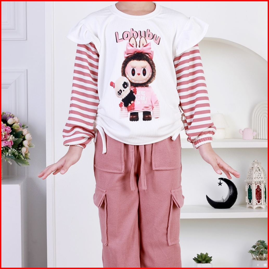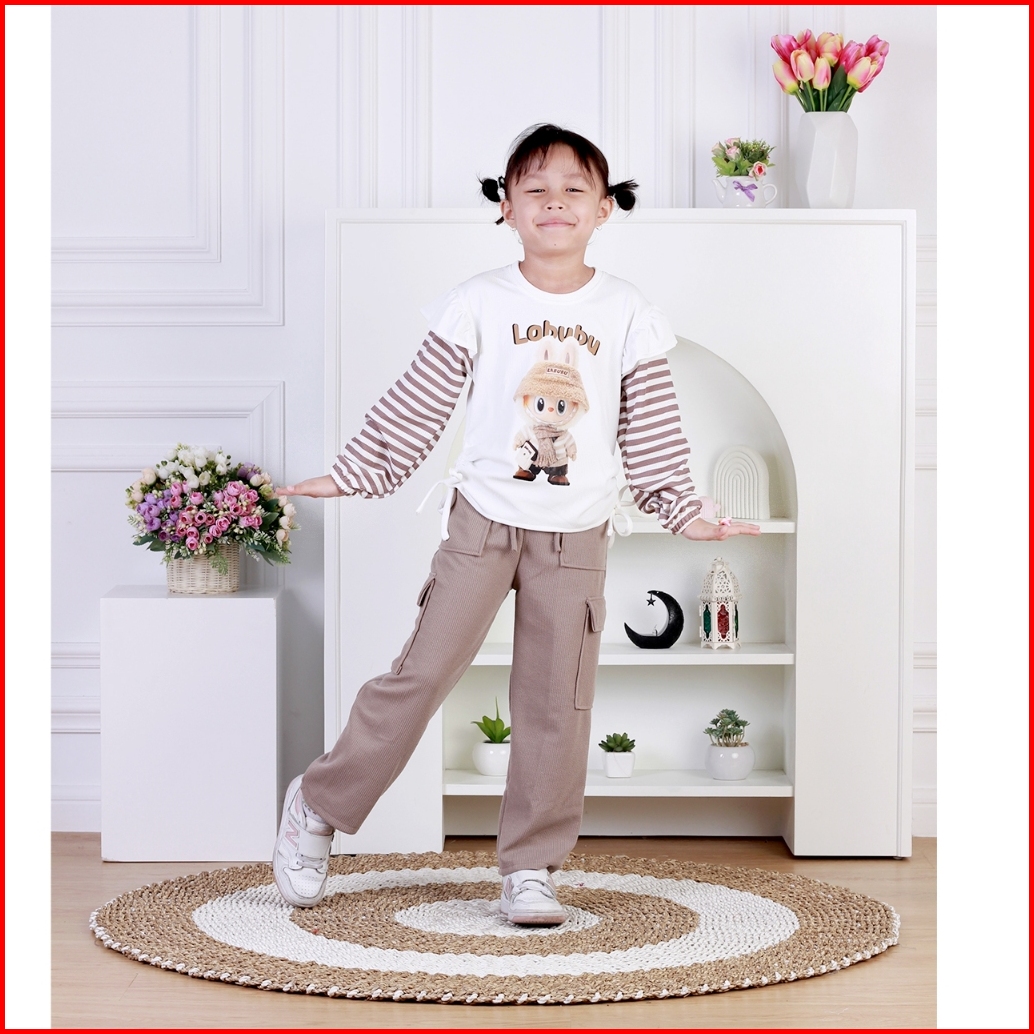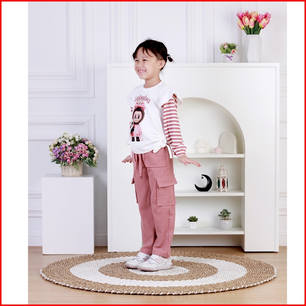 Dungdungkids Setelan Anak Viral Knitt Salur Celana Kargo 3 - 12 Tahun