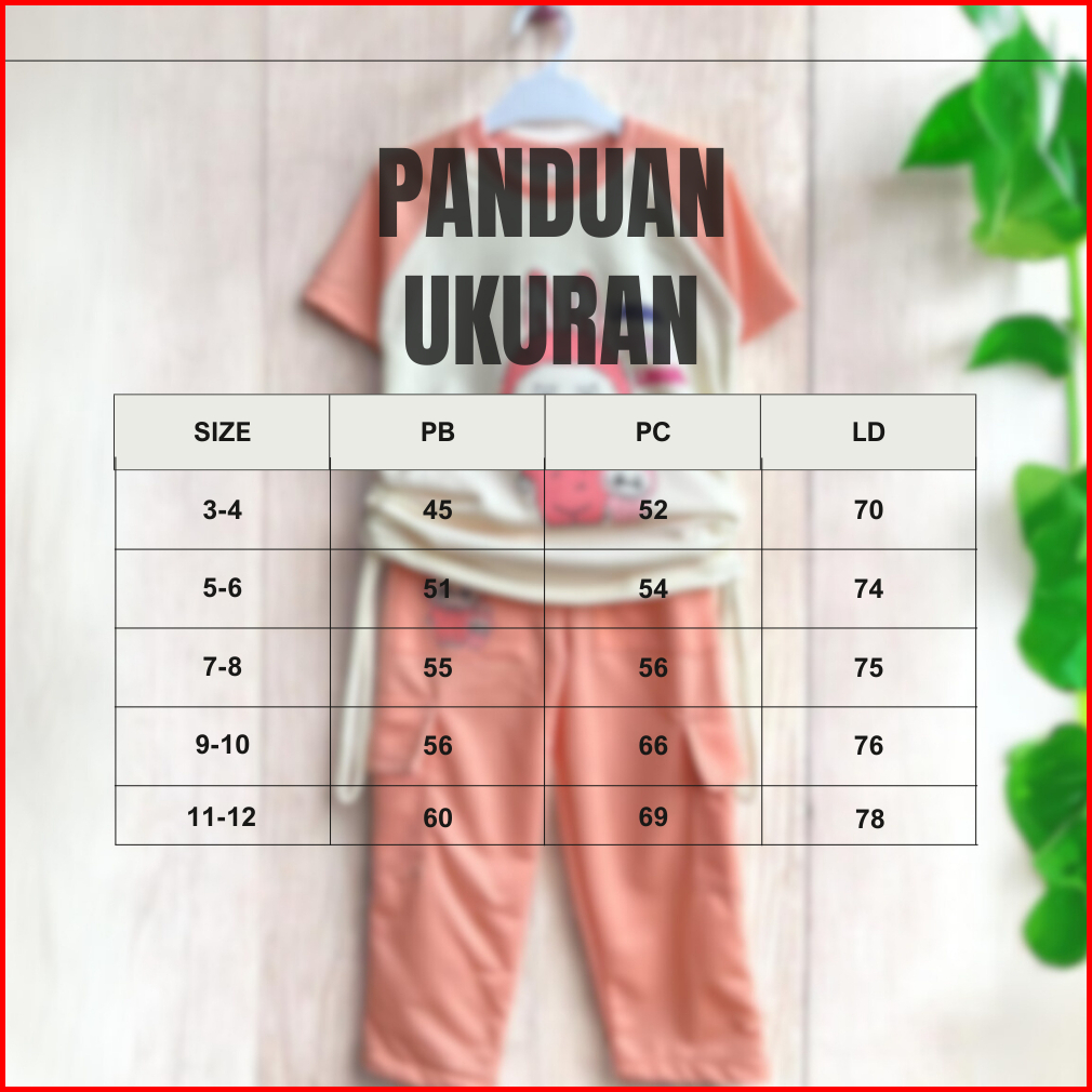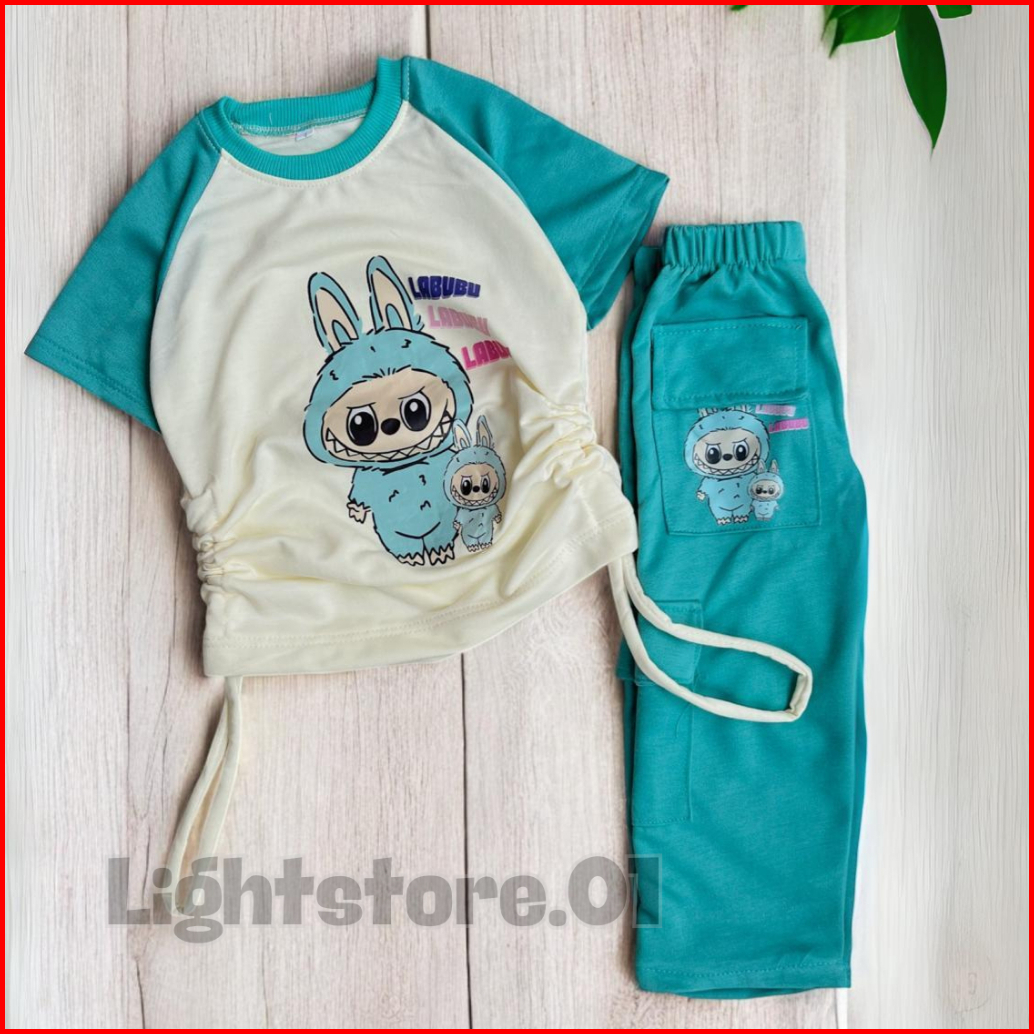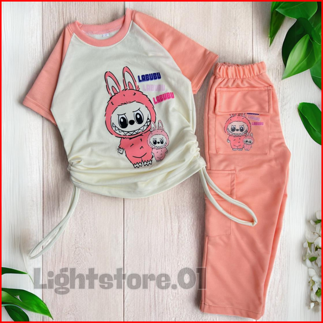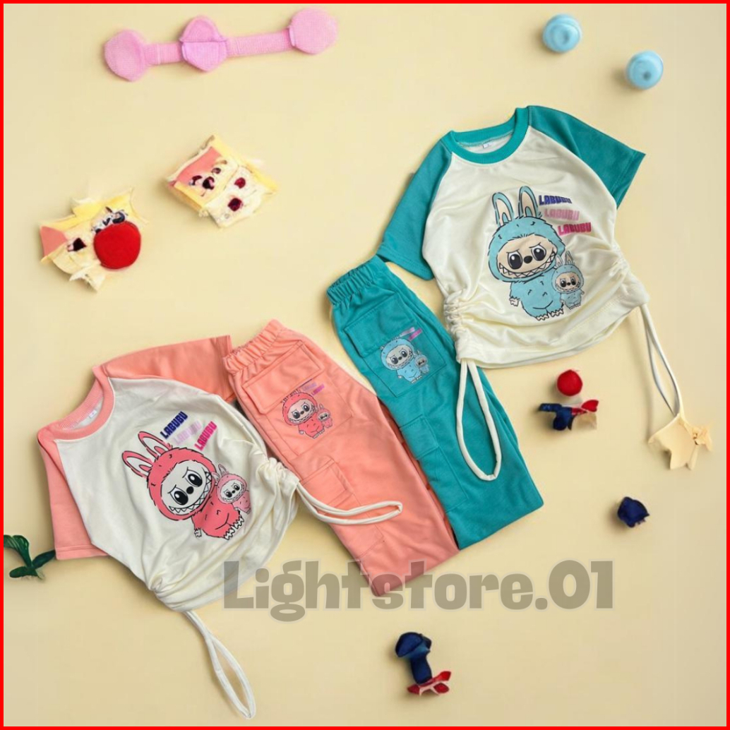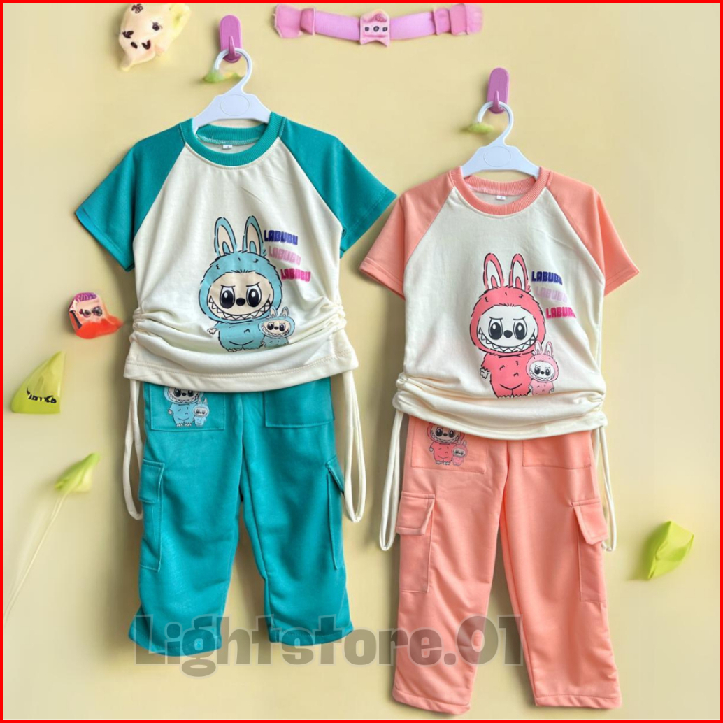 Setelan Baju Labubu Tali Serut Anak Perempuan Dan Celana Kargo Usia 3 Sampai 12 Tahun