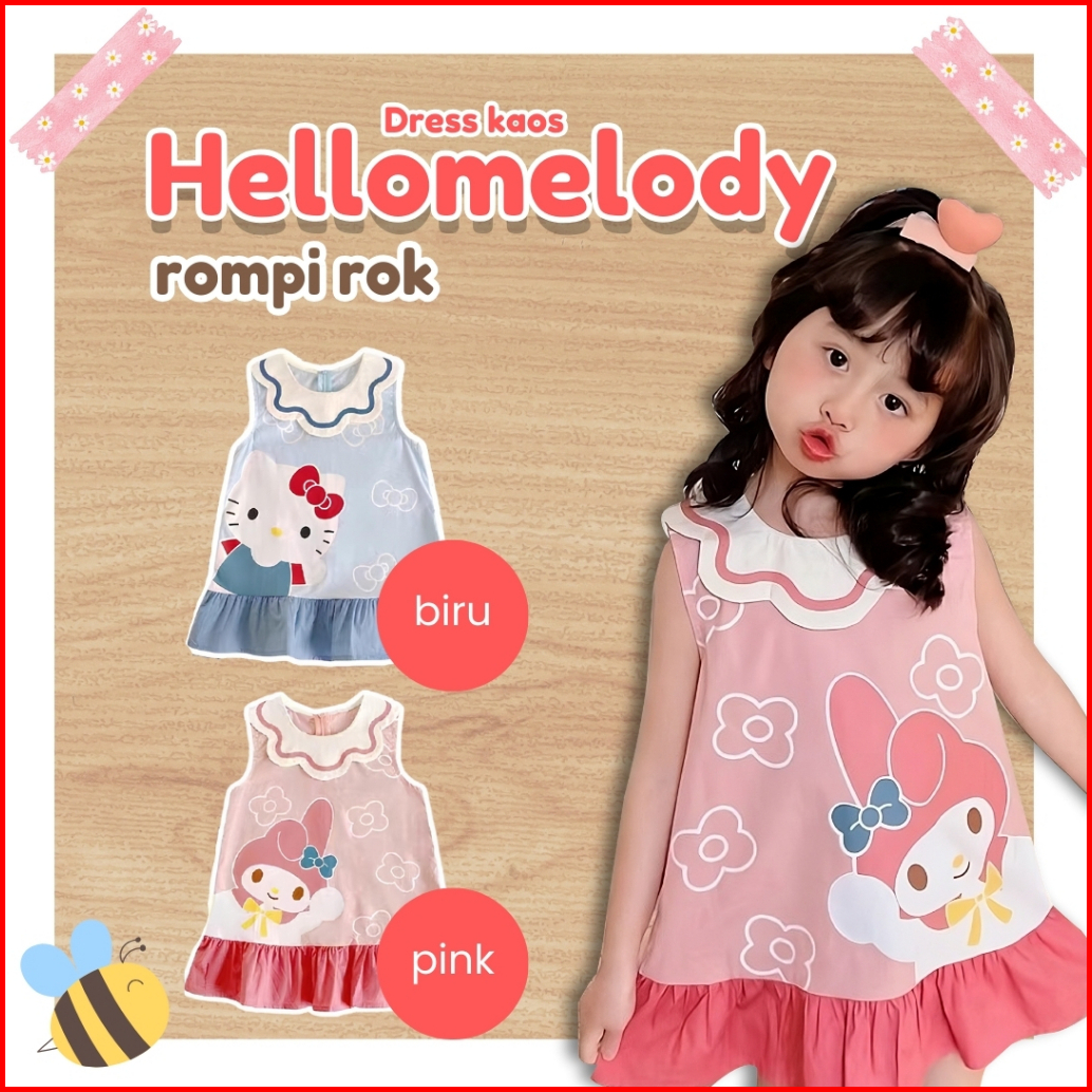 Honey.baby1-9 Tahun Dress Hellomelody Kaos Anak Perempuan Bahan Katun Lembut Nyaman Gaun Anak