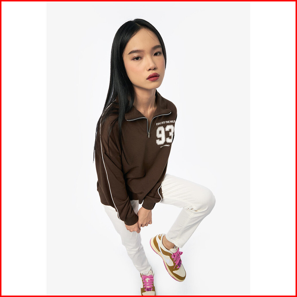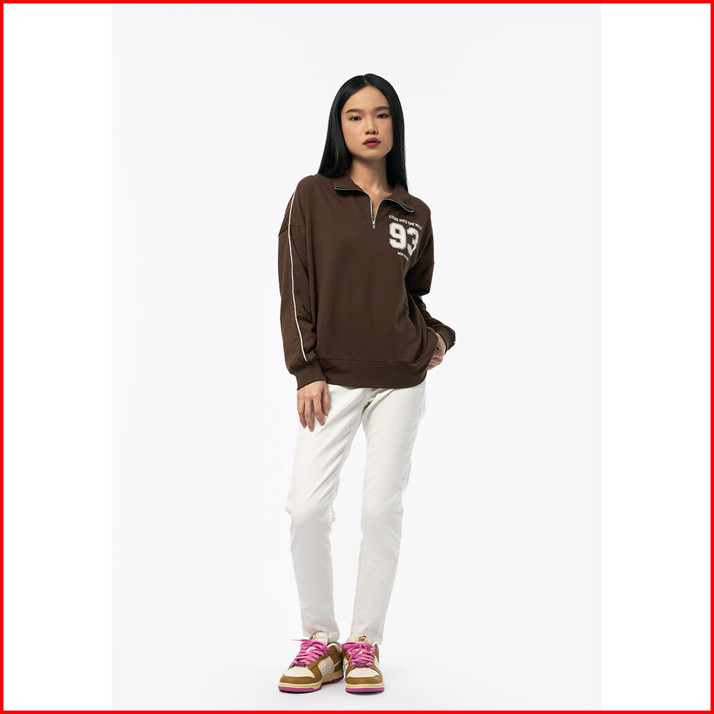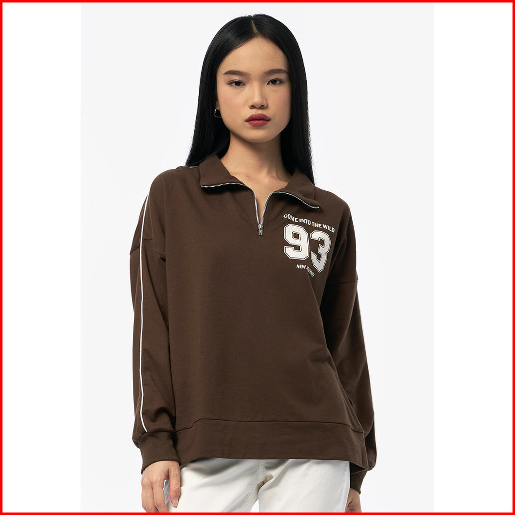 Colorbox Halp Zip Up Long Sleeve Sweatshirt Brown