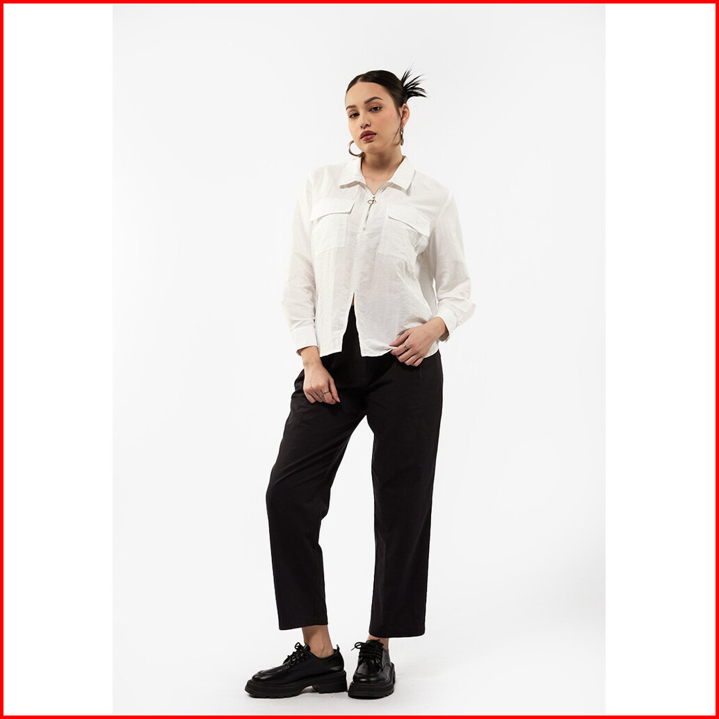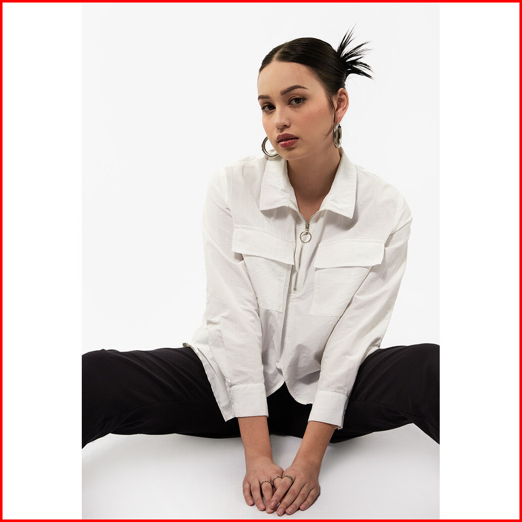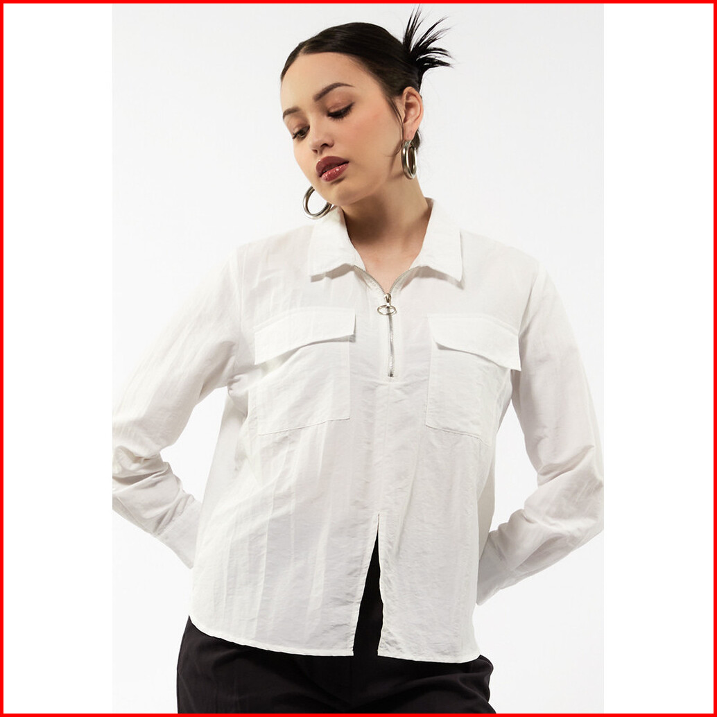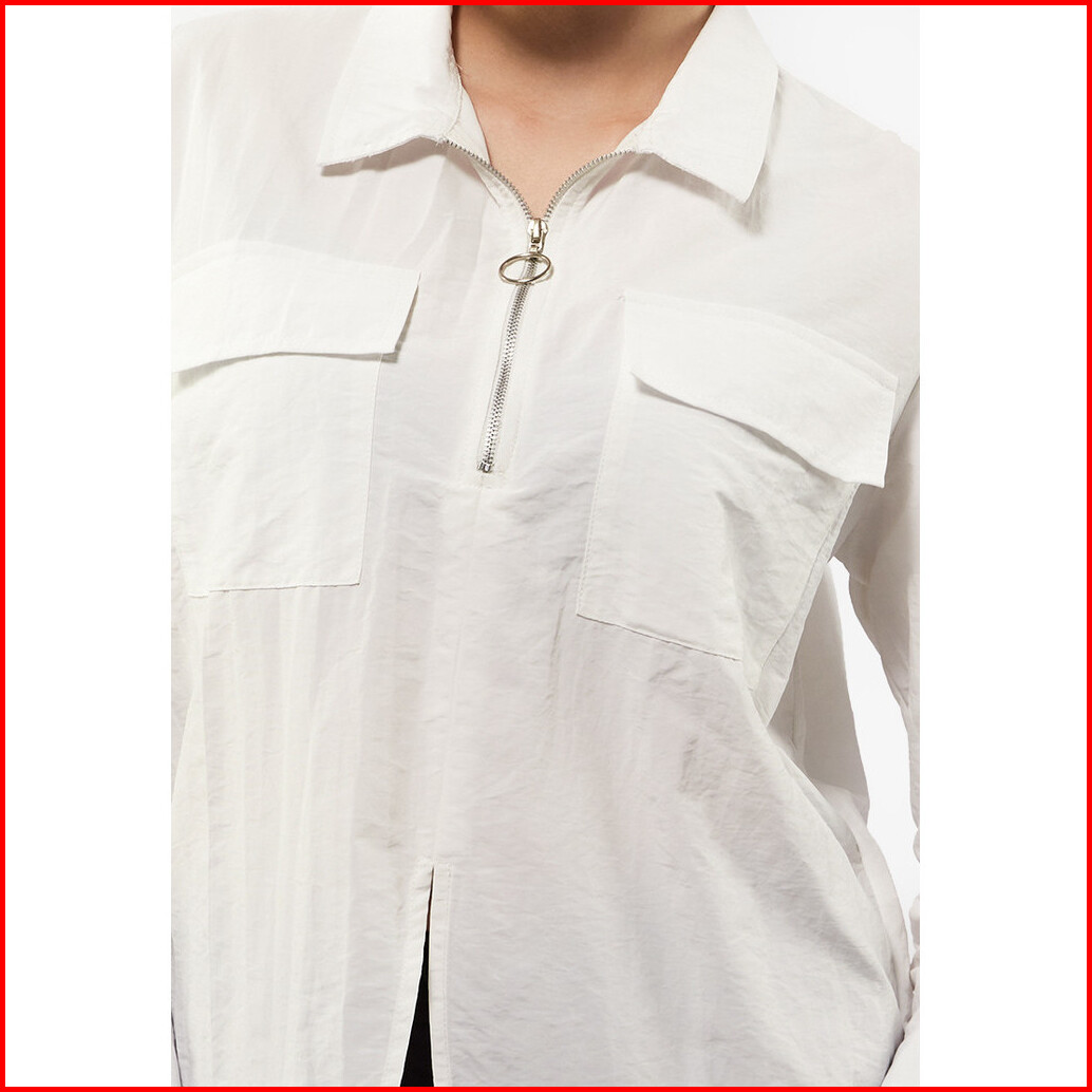 Colorbox Half Zipper Shirt With Split Hem Off White