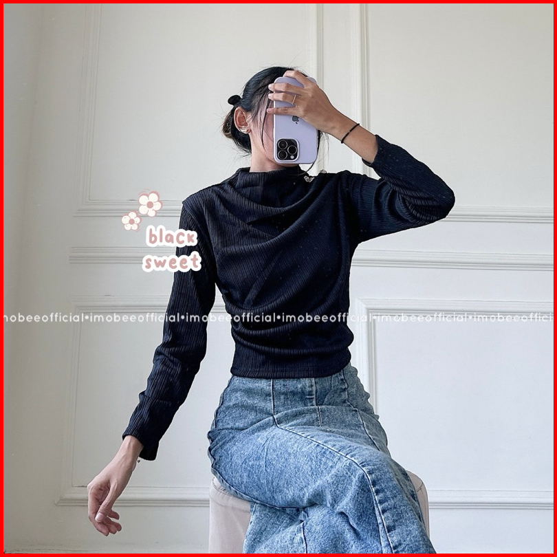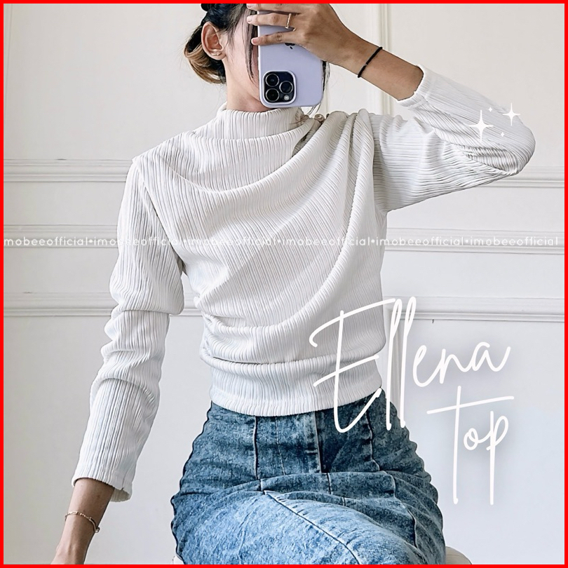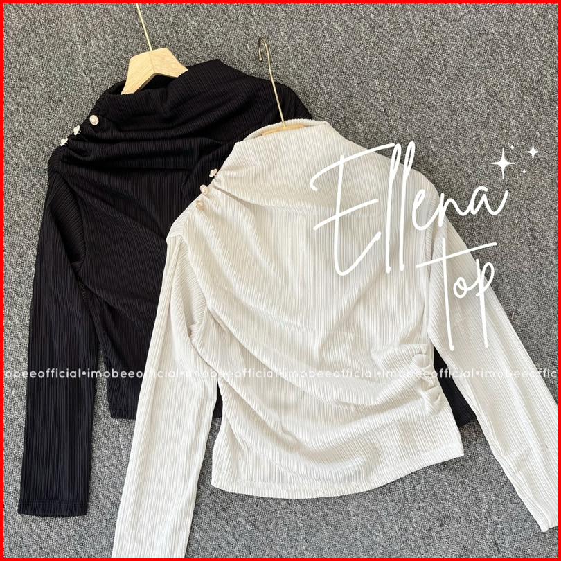 Imobeeofficial Ellena Drappery Top Blouse April Atasan Wanita Kerut Vintage Kancing Viral