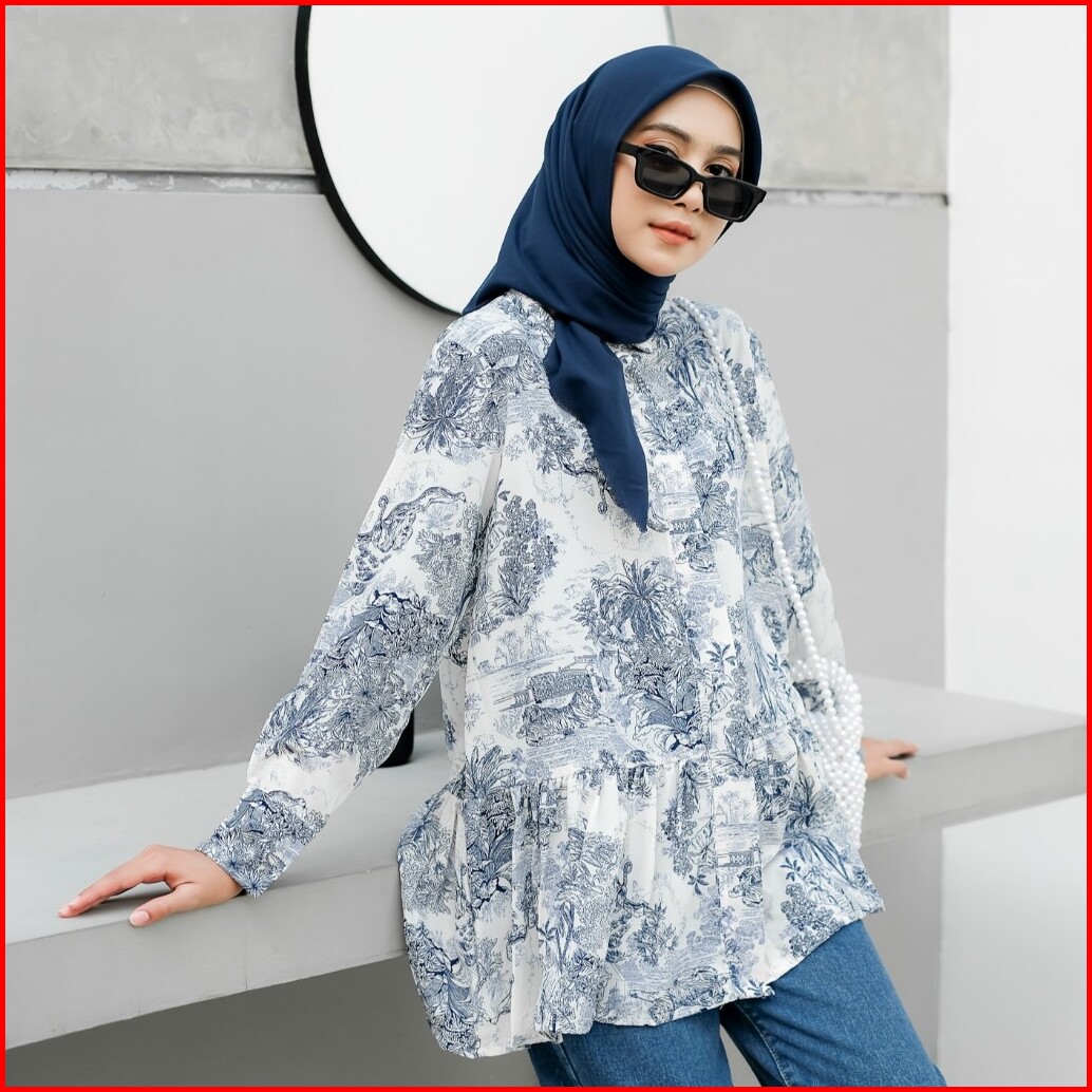 Hosofshopaholic - Harvia Peplum - Pakaian Wanita - Atasan - Peplum - Lengan Panjang - Motif - Allsize
