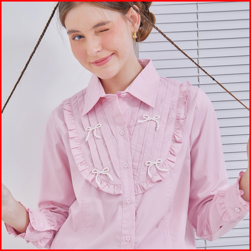 Senchi - Yumebon Coquette Shirt Kemeja Pita Lucu Kemeja Wanita Style Jepang Korea Kemeja Wanita Coquette Kemeja Wanita R