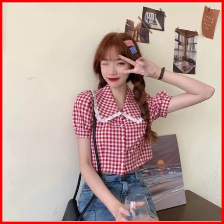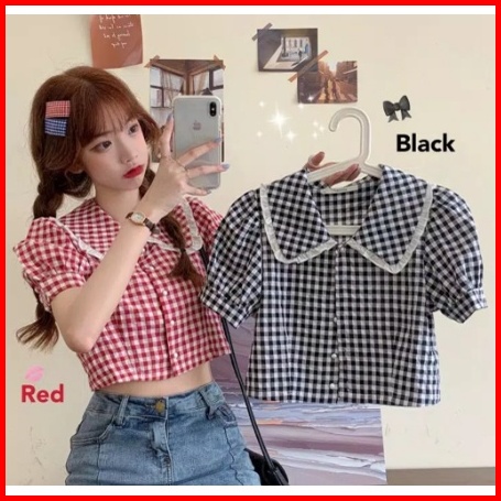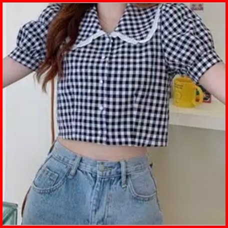 Korean Square Collar Crop Top 1214 Baju Atasan Wanita Terbaru Xs-xl