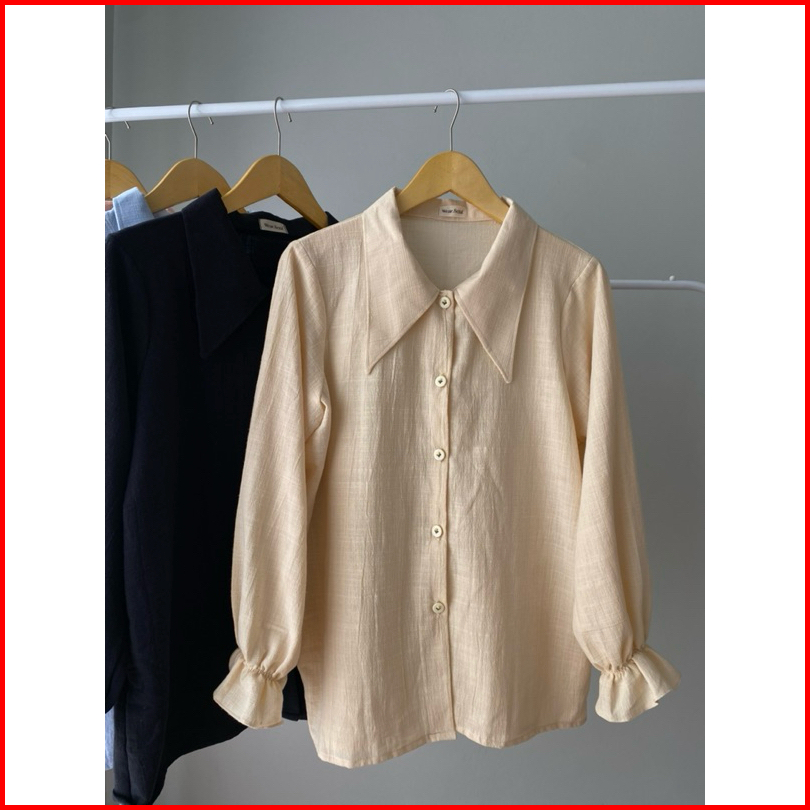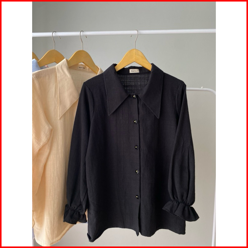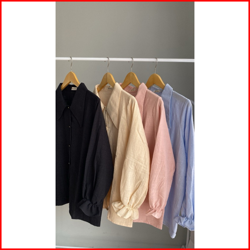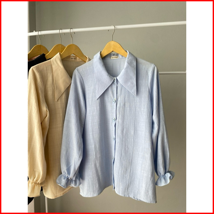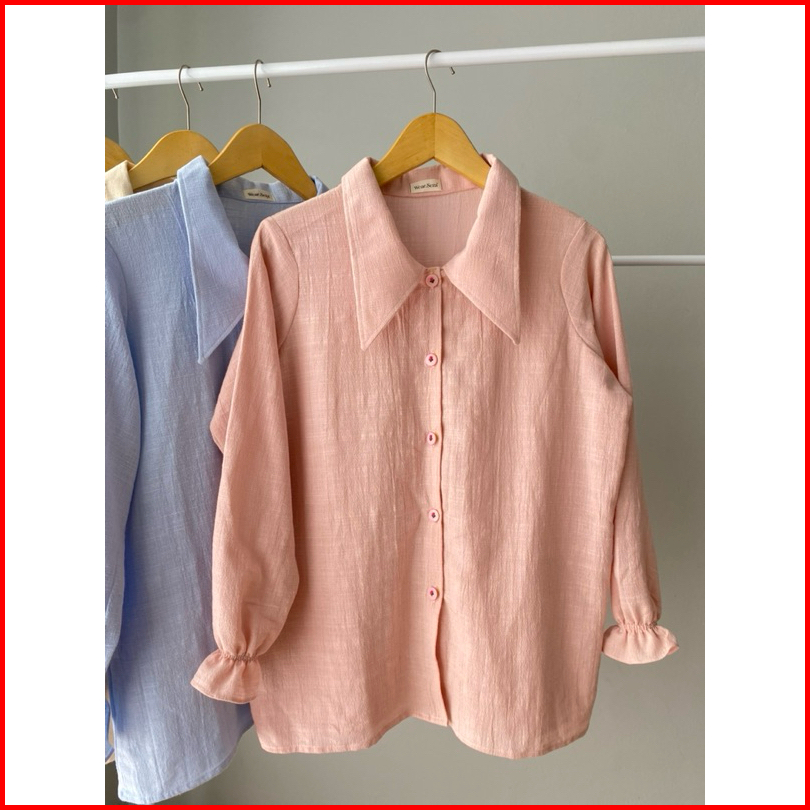Wear.seza - Mini Tulips Button Shirt Korean Shirt Kemeja Korea Linen Shirt Kemeja Linen