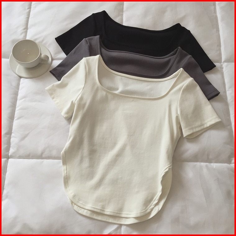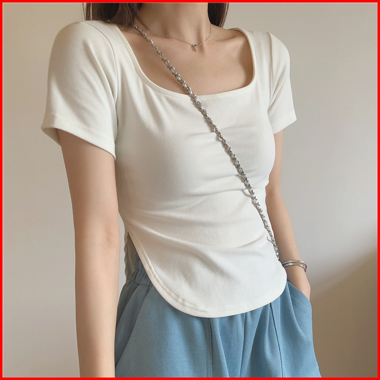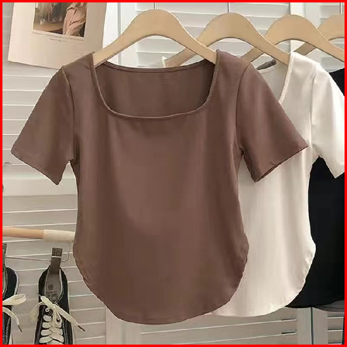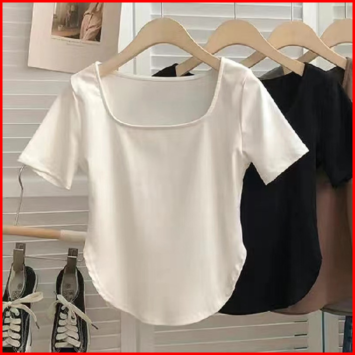 Okey Belibj1172 Baju Atasan Kaos Spandek Korean Wanita Sexy Lengan Pendek Leher Model U Fashion