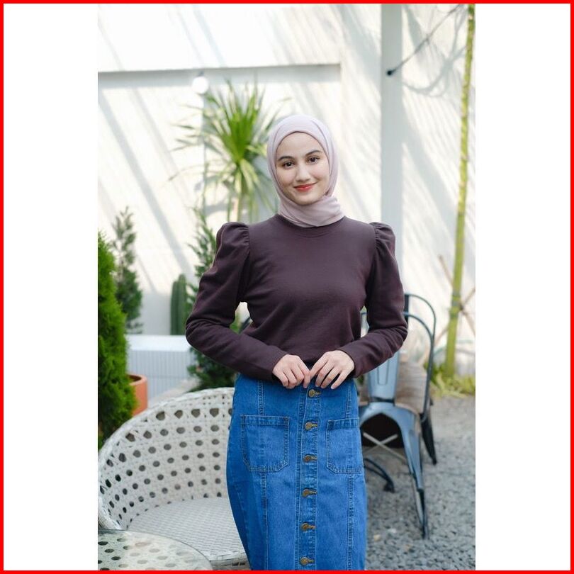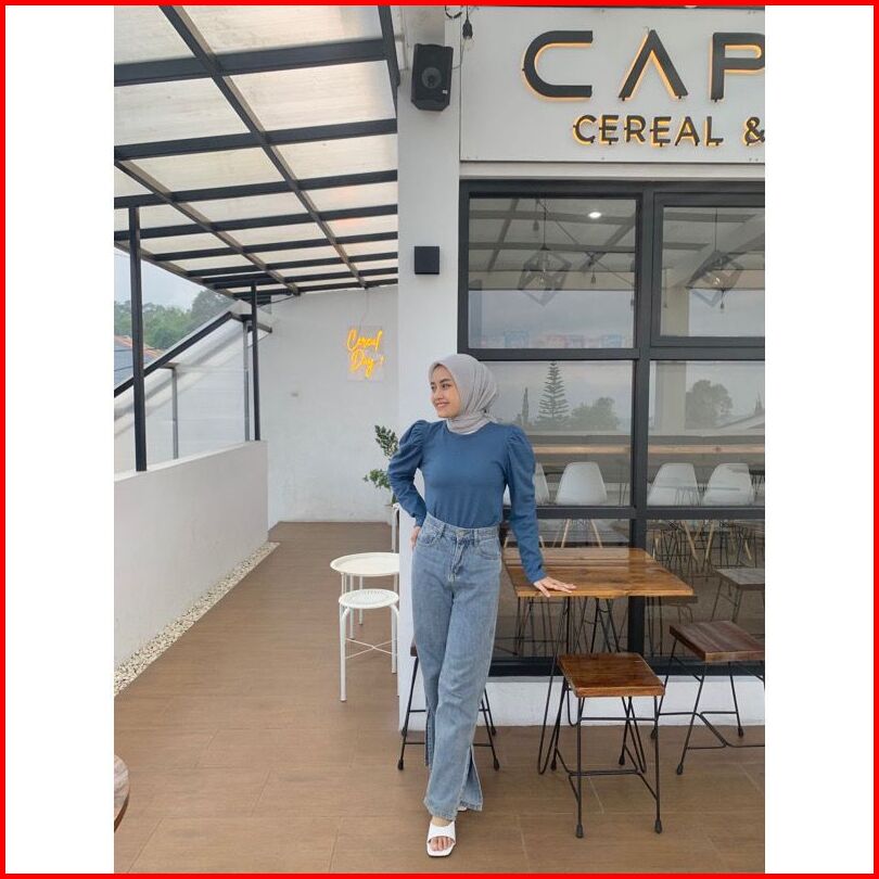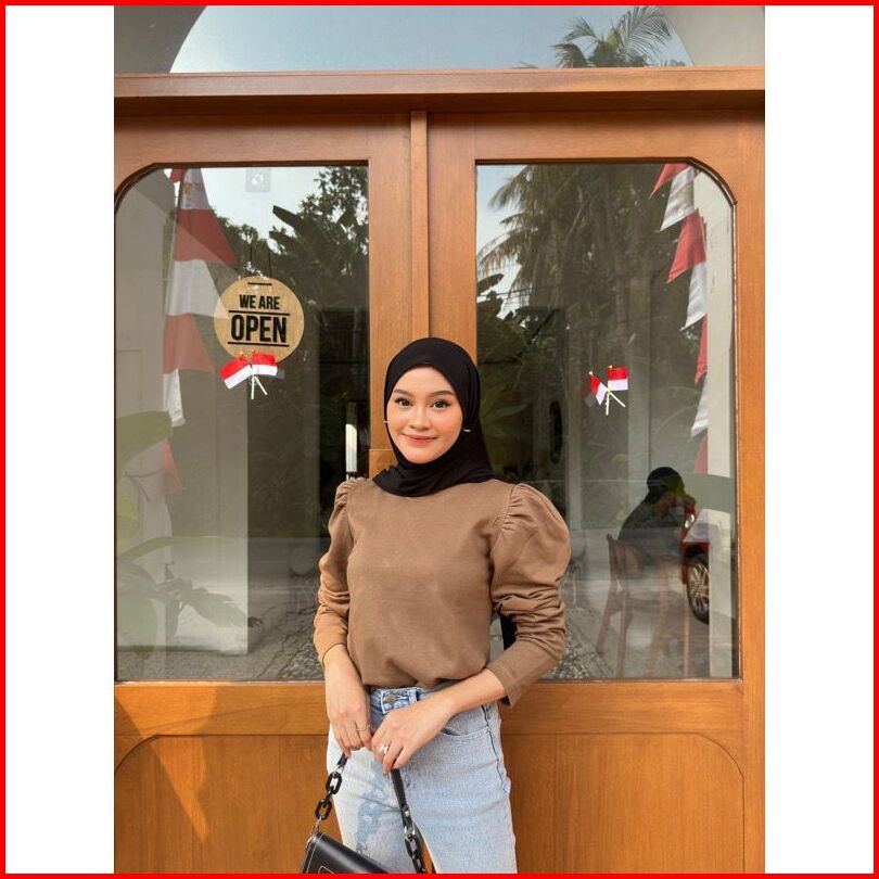 Puffy Shoulder Top Wanita Kekinian Lengan Balon Korean Style