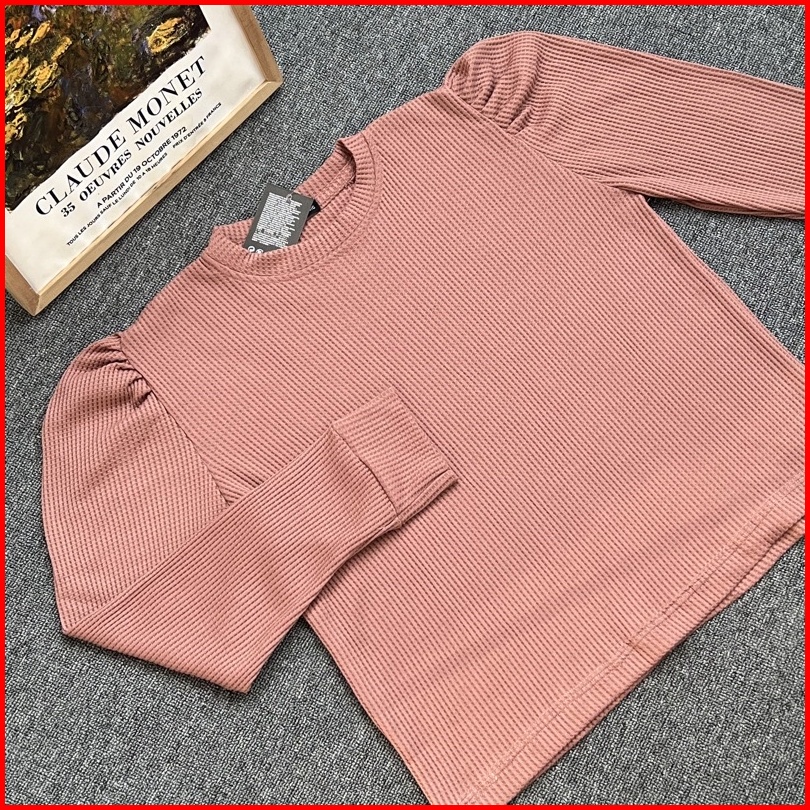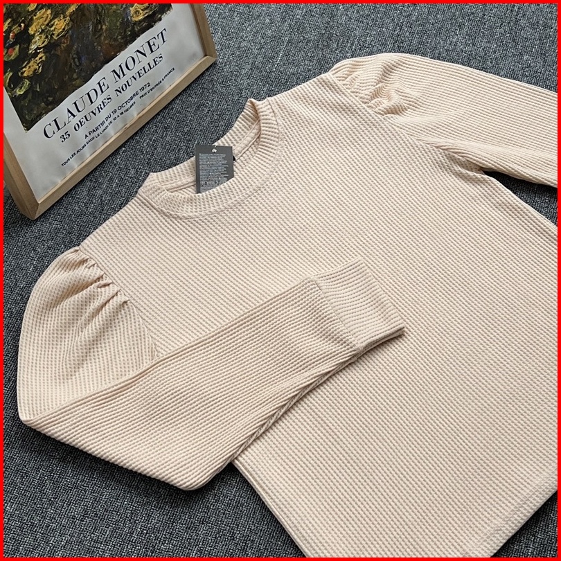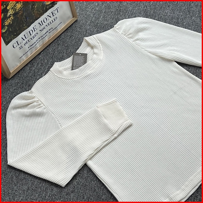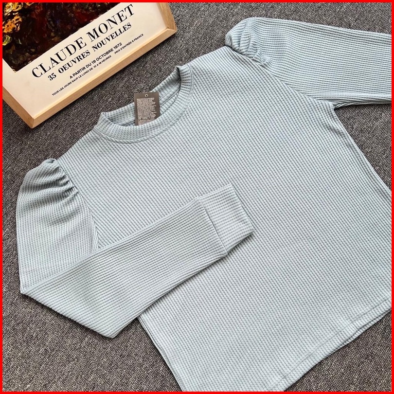 Termurah Puffy Shoulder Top Kaos Wafer Lengan Panjang Model Balon All Size