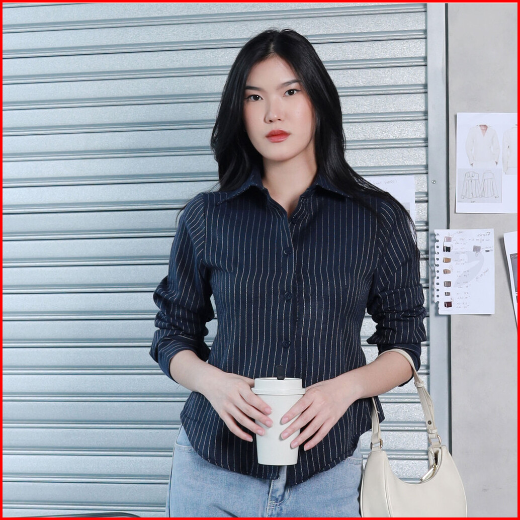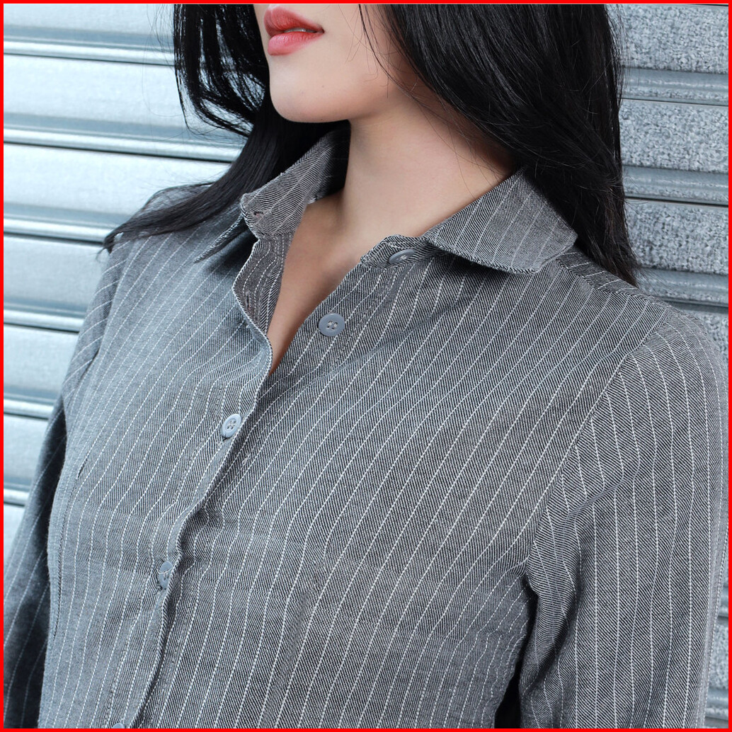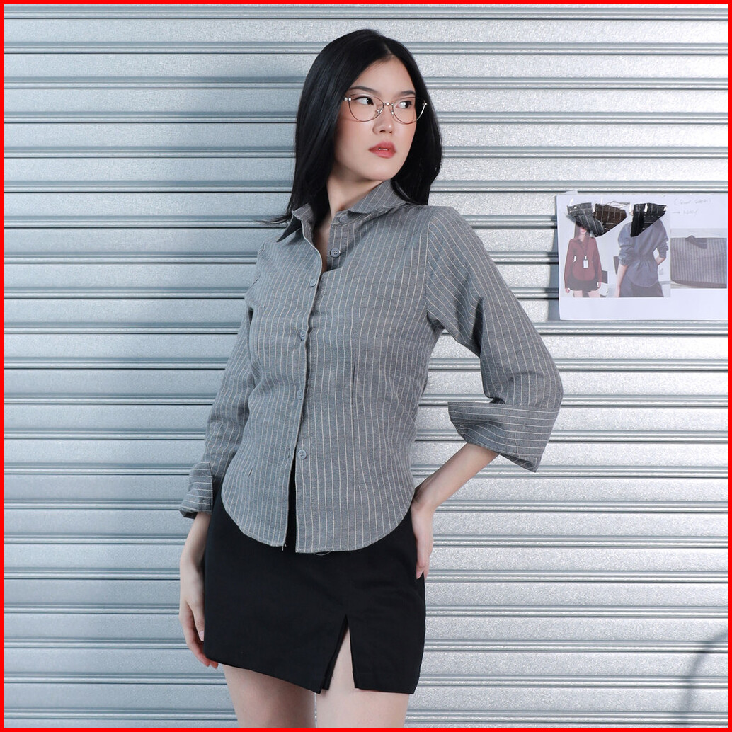 Fally Cecilia Stripe Shirt Kemeja Kantor Kemeja Salur Kemeja Lengan Panjang Casual