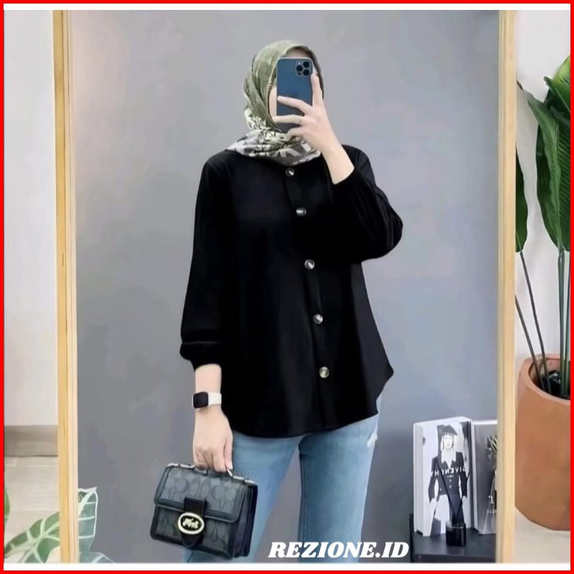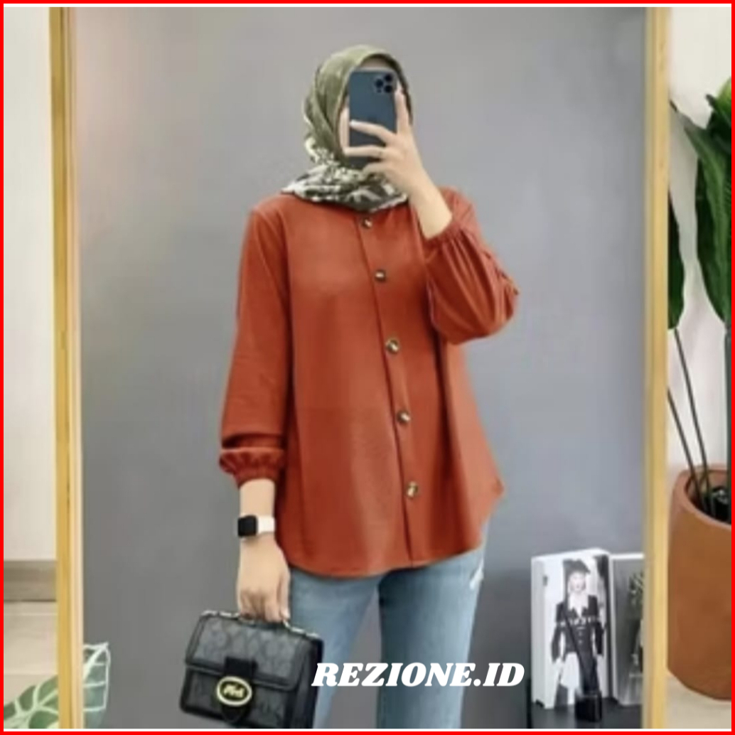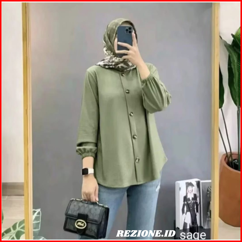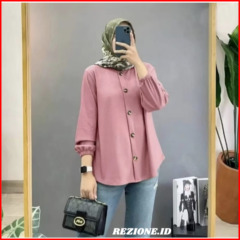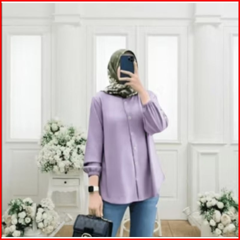Kemaja Wanita Busui Full Kancing Crinkle Airflow Premium Blouse Lengan Karet Atasan Kekinian Size S-xxxl
