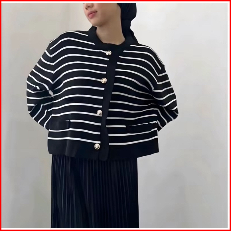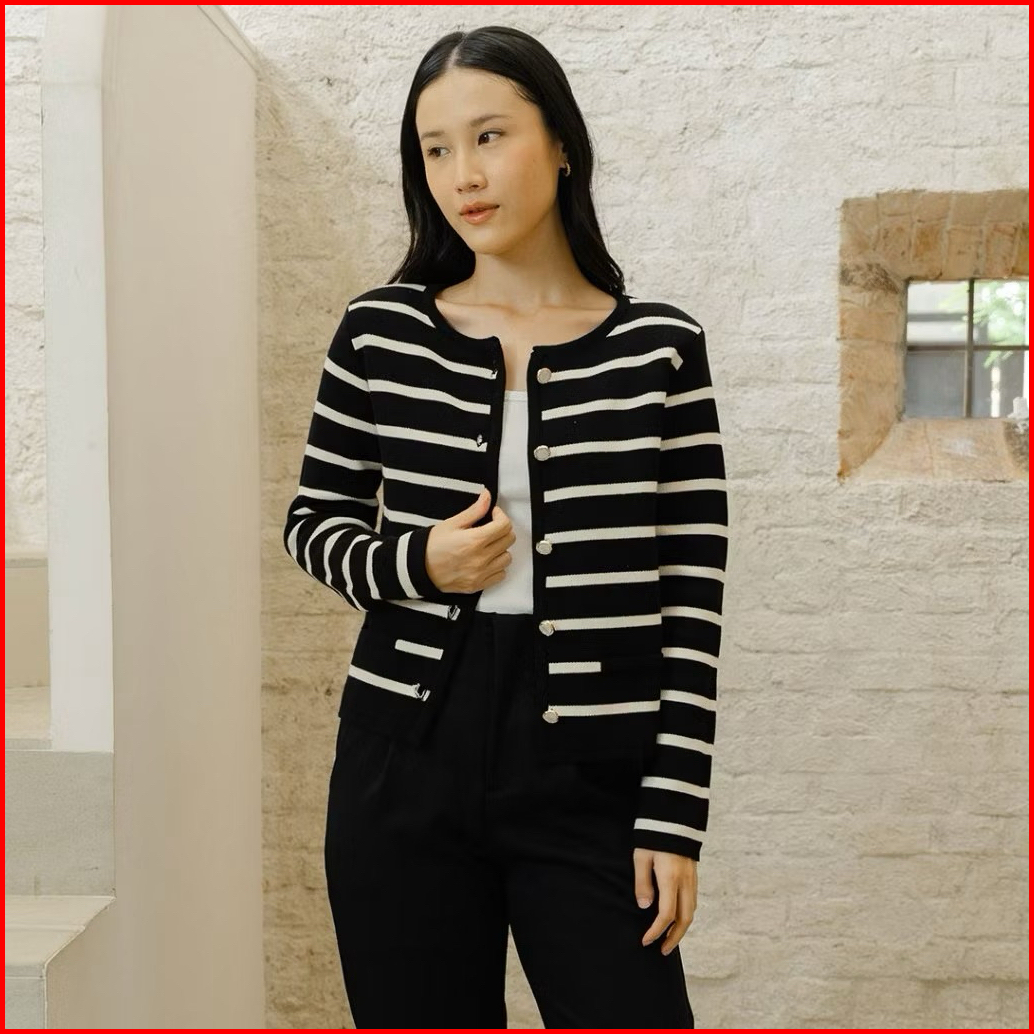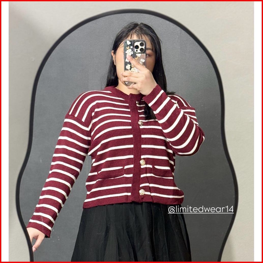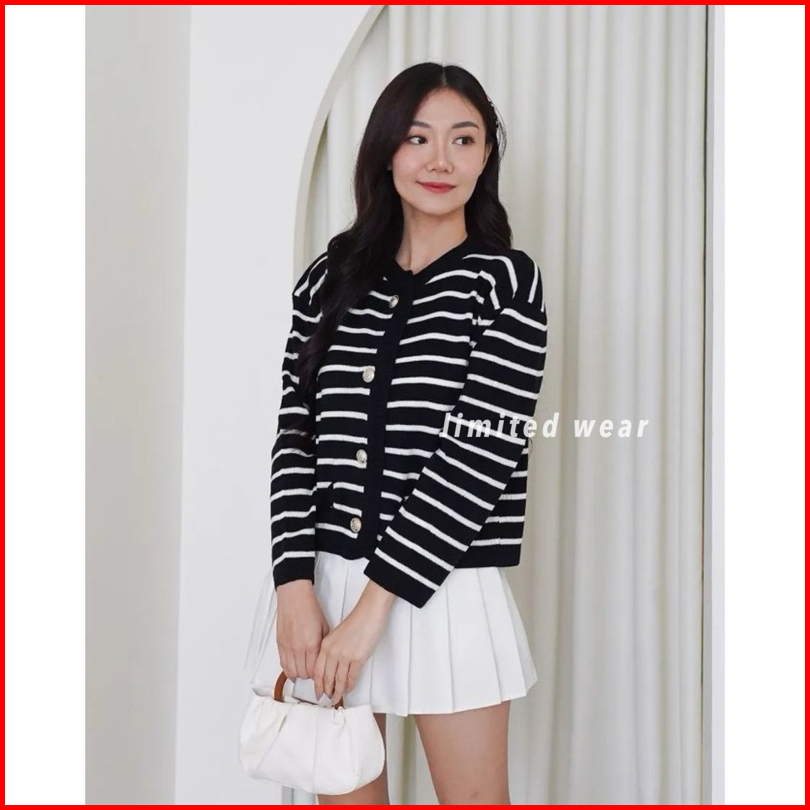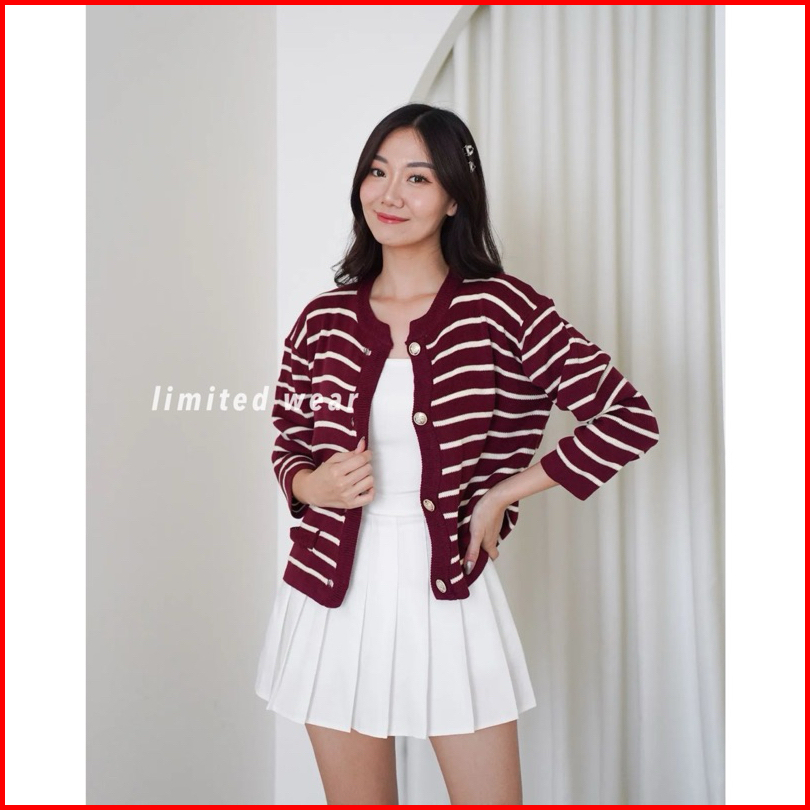 Limited - Lalisa Knit Stripe Kardigan Cardigan Knit Garis Sweater Wanita Clara Knit Korea Baju Merah Putih Agustusan