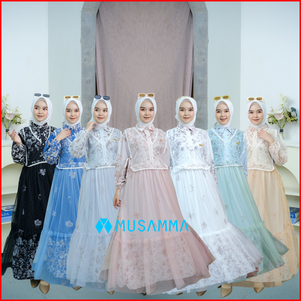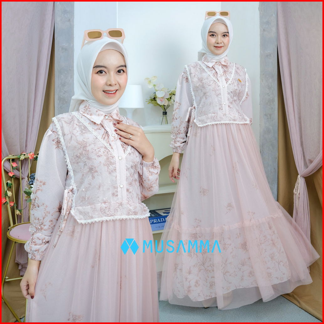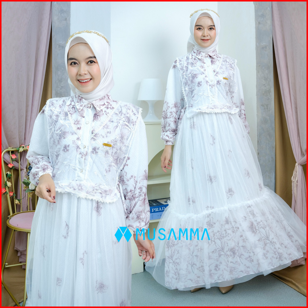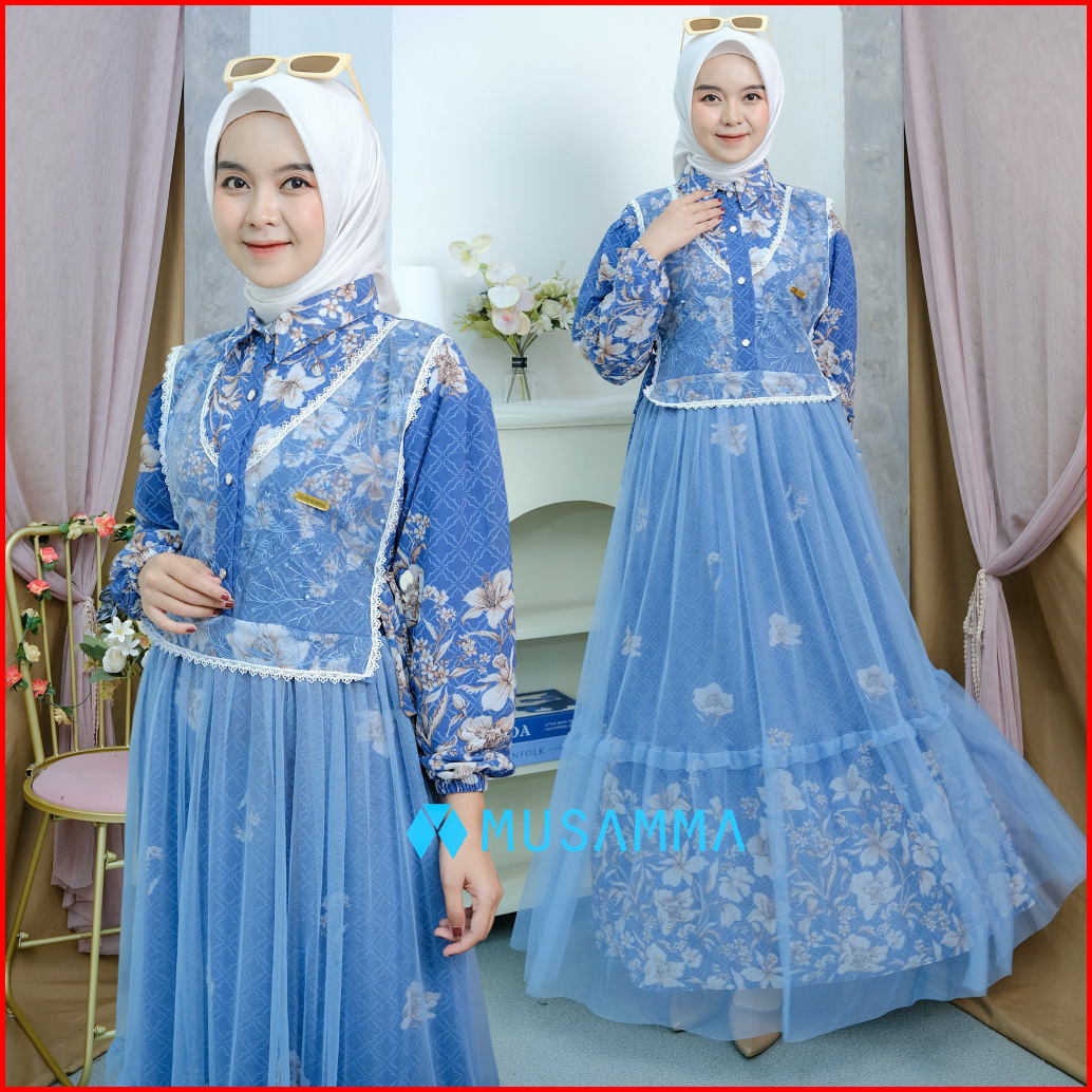 Ghina Dress - Gamis Ceruty Print Full Furing Mix Tile Renda Busui Dan Wudhu Friendly