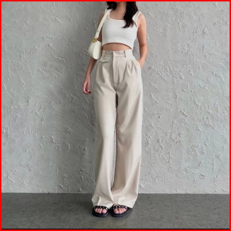 Oro Pants Highwaist Loose Pants Trousers - Celana Anti Kusut - Ths Collection