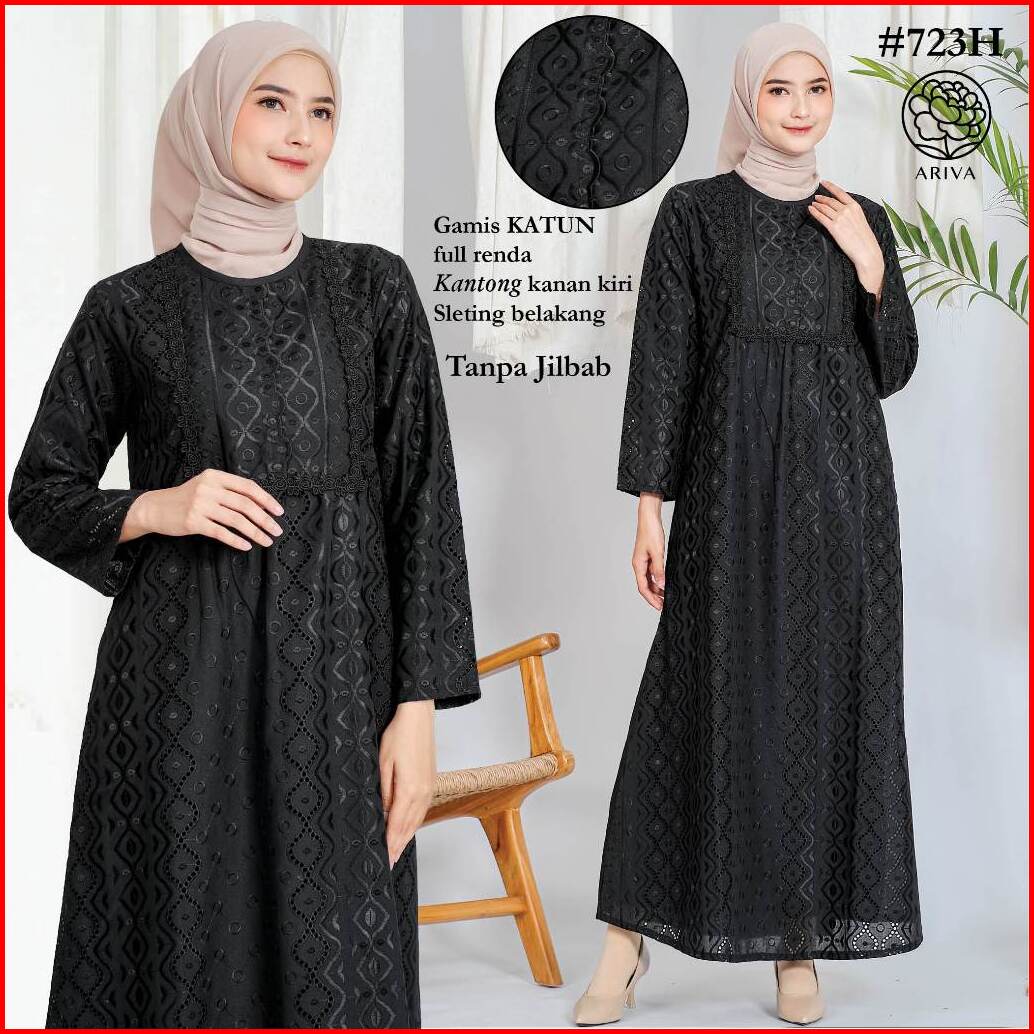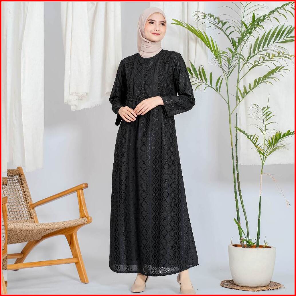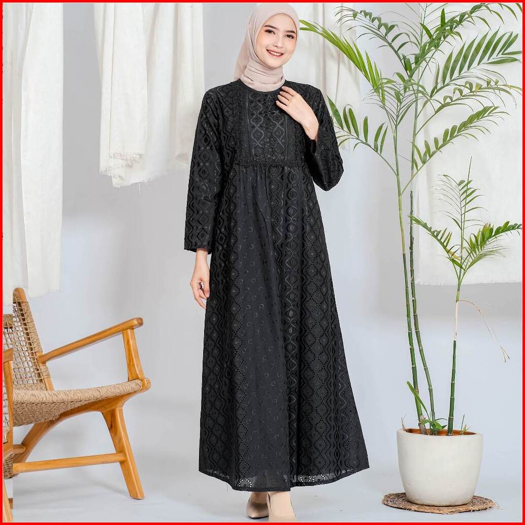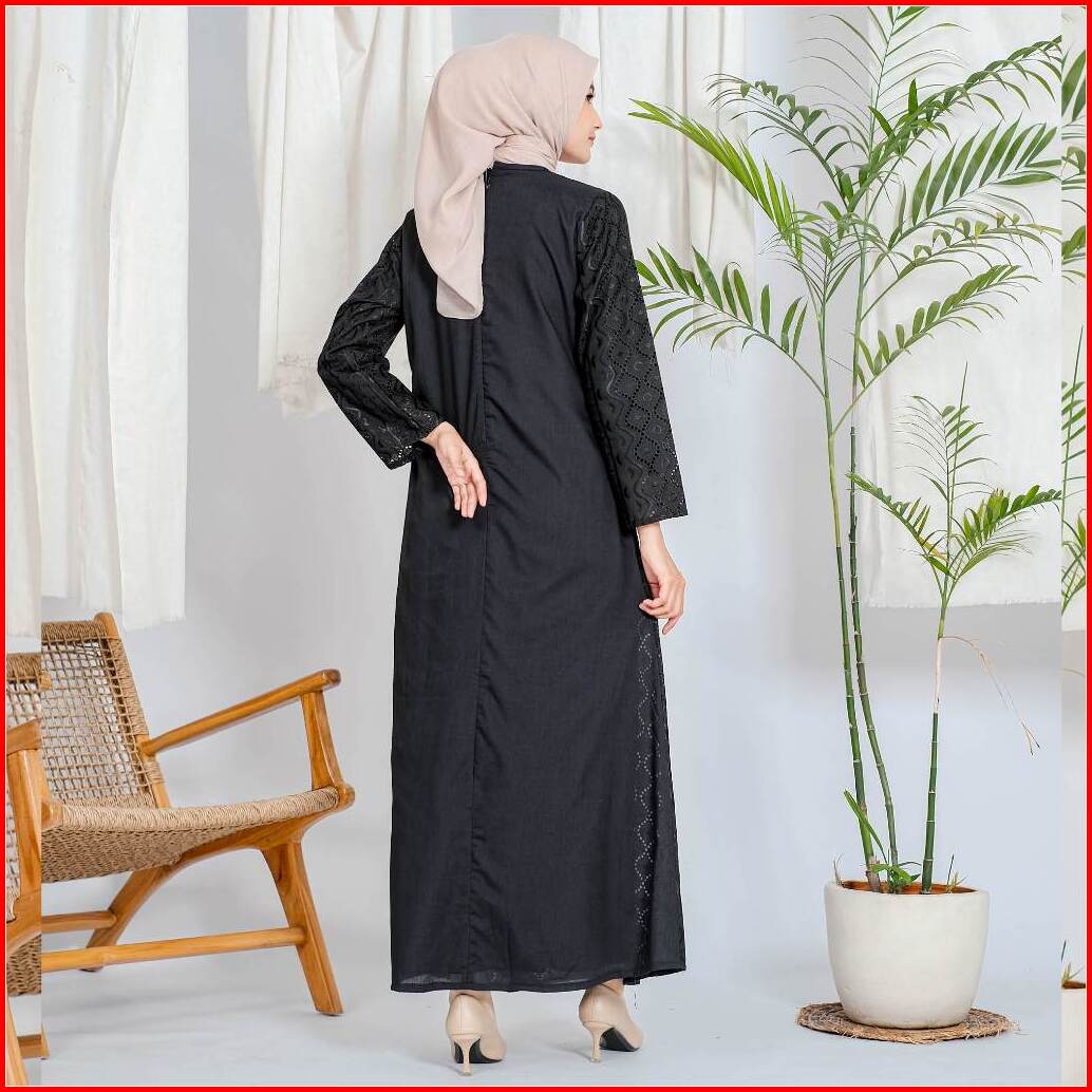 Gamis Elmira Katun Silk Renda Full 723 - Gamis Katun Hitam Muslim Untuk Haji Ihrom - Perlengkapan Haji By Ariva