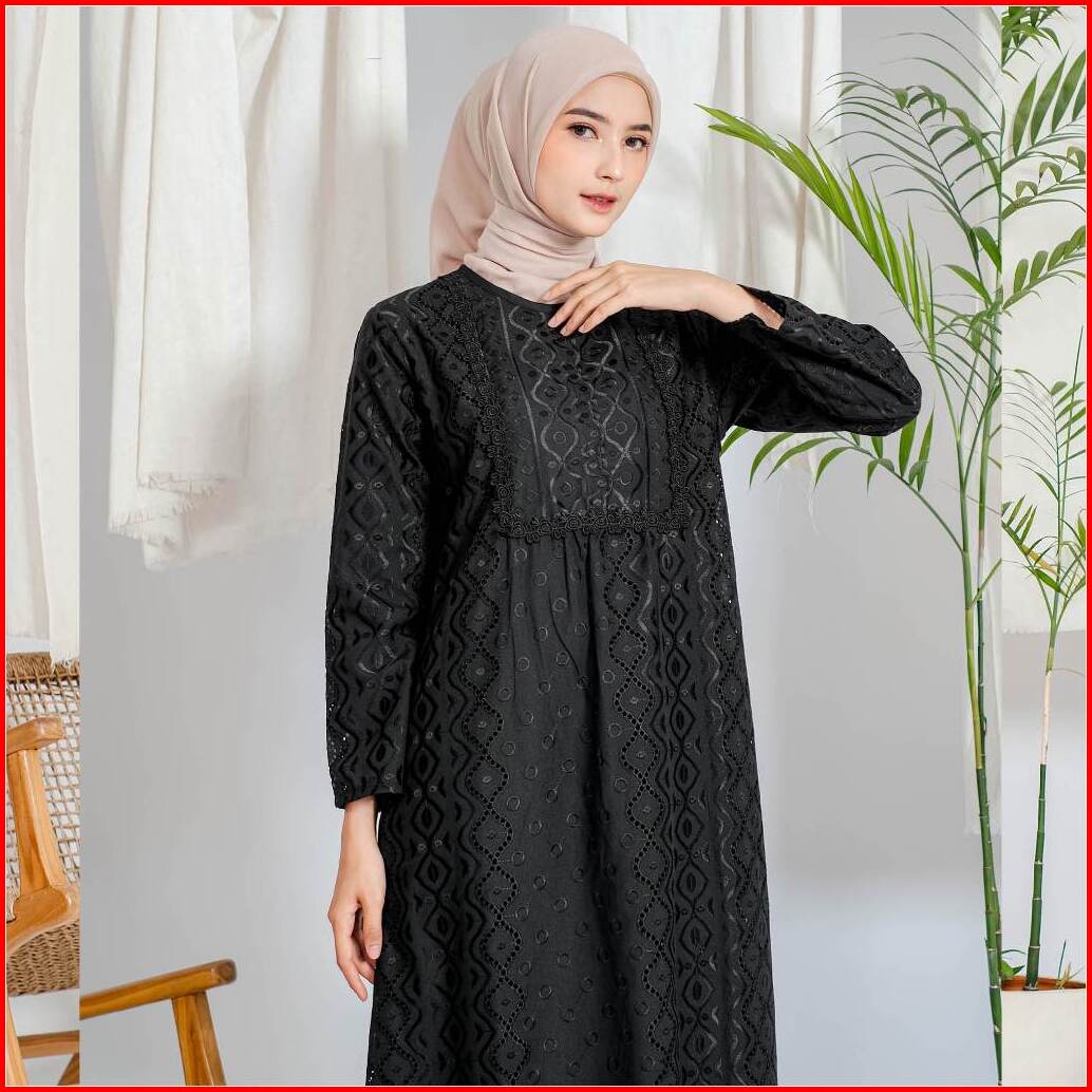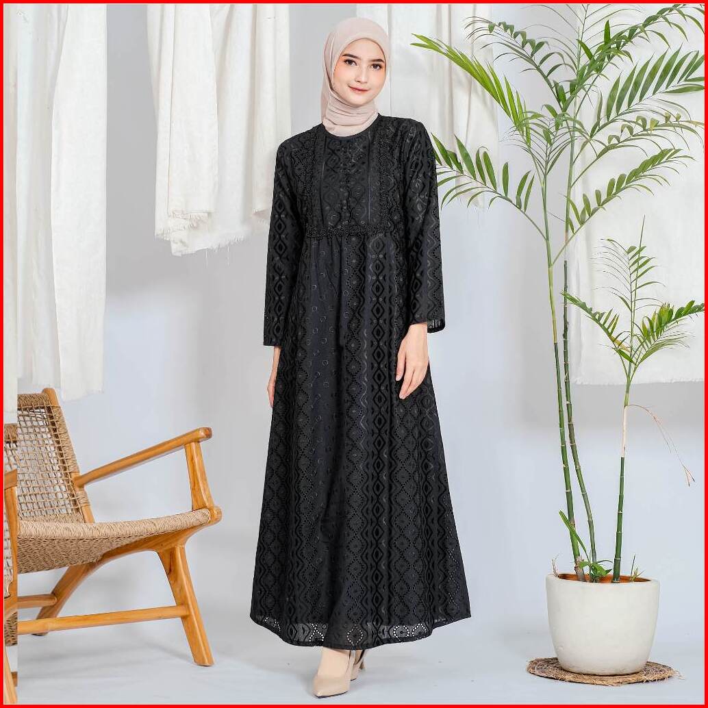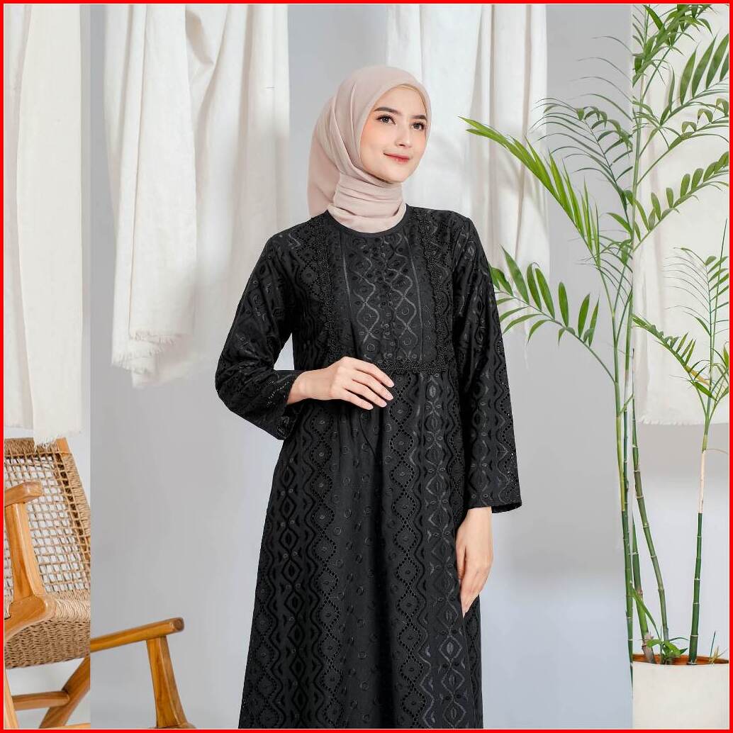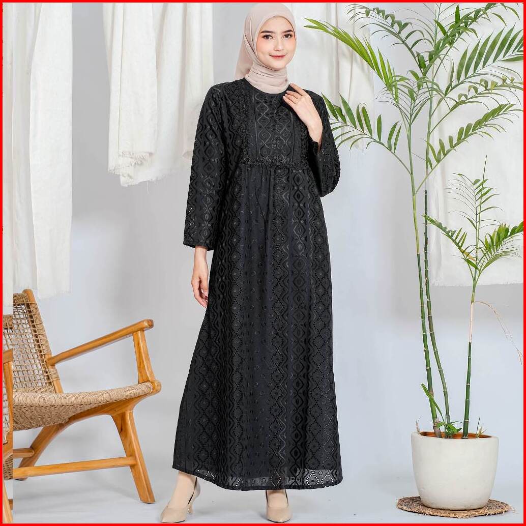 Gamis Elmira Katun Silk Renda Full 723 - Gamis Katun Hitam Muslim Untuk Haji Ihrom - Perlengkapan Haji By Ariva