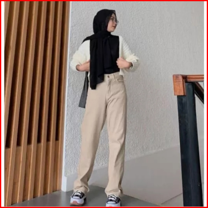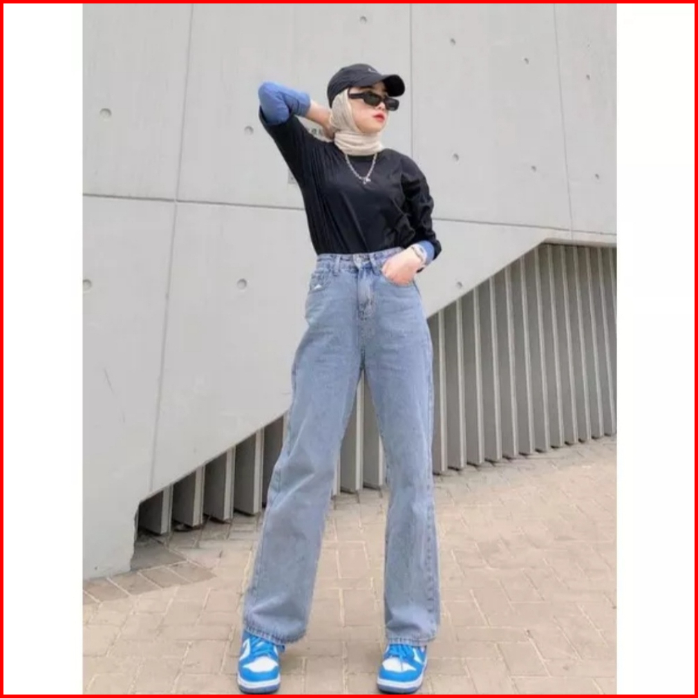 Baggy Jeans - Celana Retro Jeans Highwaist Loose Korea Style Terbaru