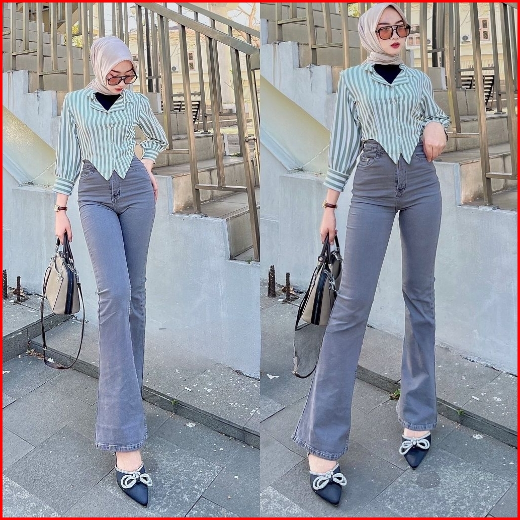 Jeans Cutbray Highwaist Wanita Celana Cutbray Flared Streetch Premium Quality