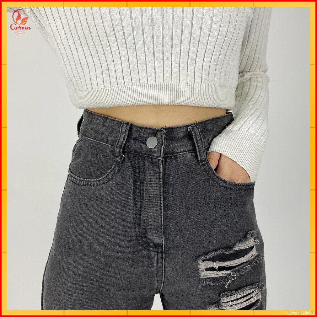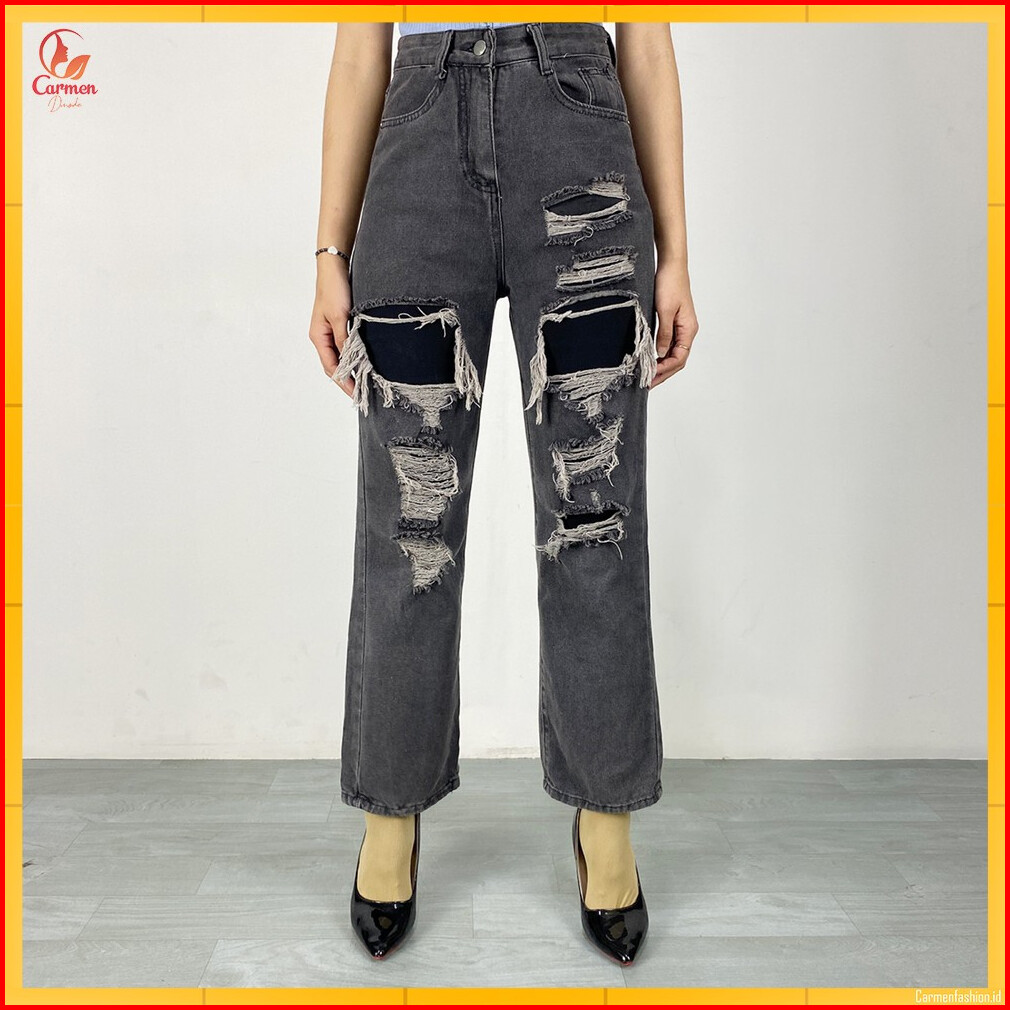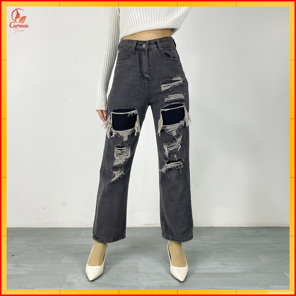 Celana Kulot Panjang Wanita Model Ripped Jeans Highwaist Celana Denim Women Kekinian Cf P614