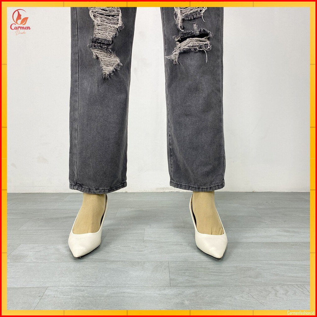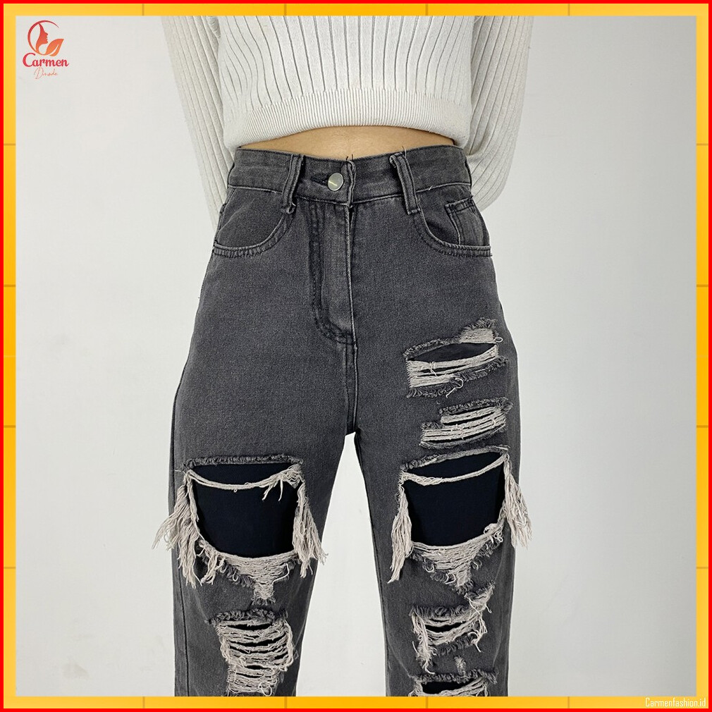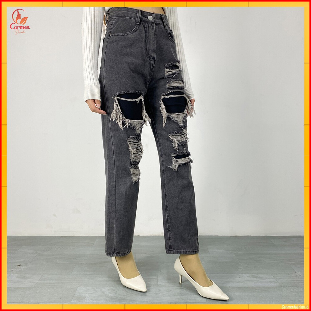 Celana Kulot Panjang Wanita Model Ripped Jeans Highwaist Celana Denim Women Kekinian Cf P614