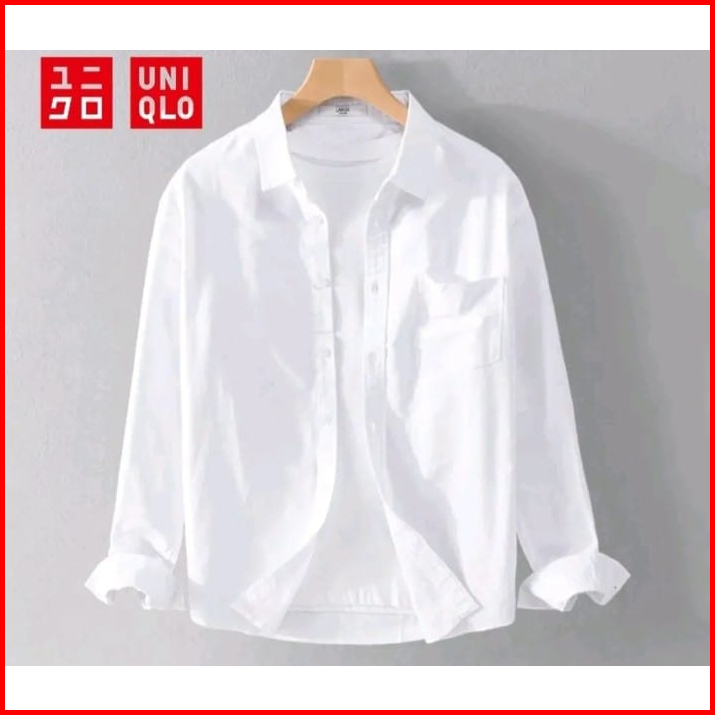 Kemeja Pria Uniqlo Panjang Polos Casual Slim Fit Premium