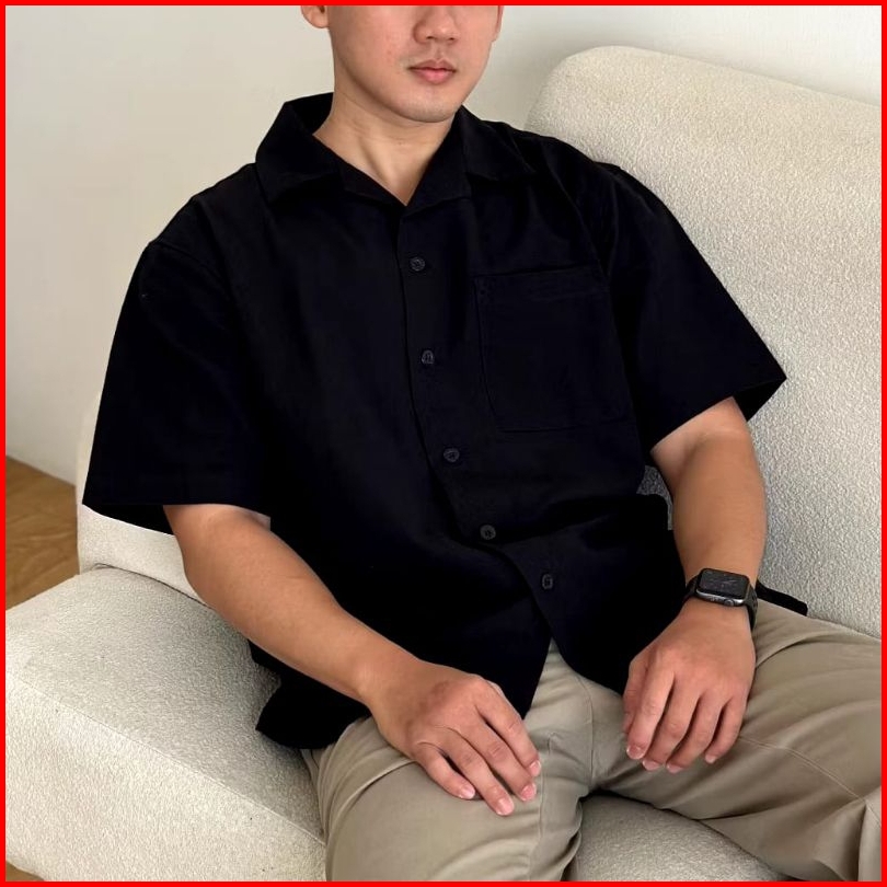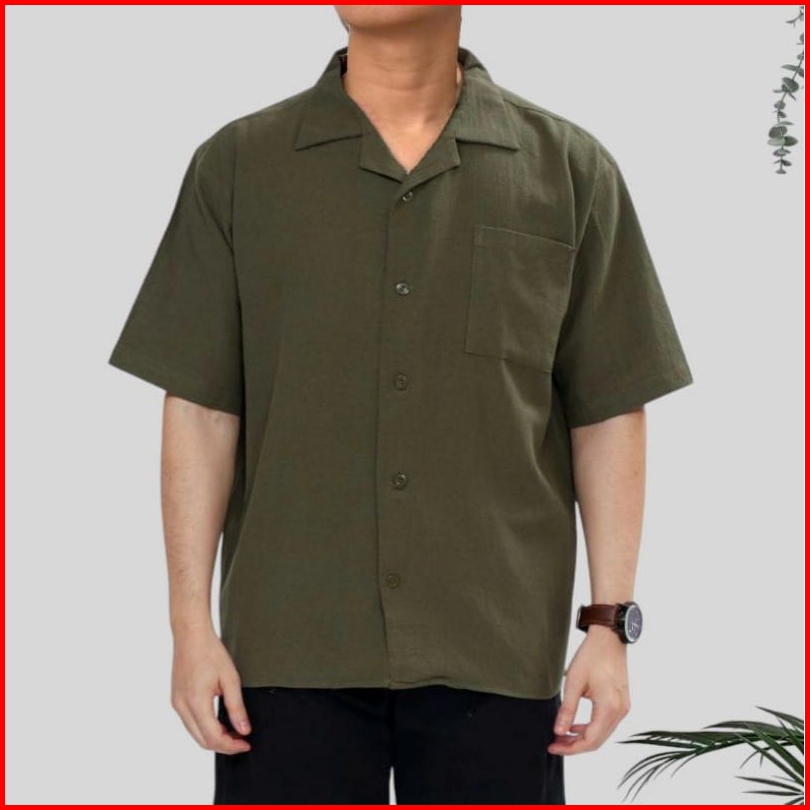 Reinaclub Cuban Bowling Boxy Oversized Linen Shirt Kemeja Linen Bowling Polos Pria Kerah Terbuka Lengan Pendek 81