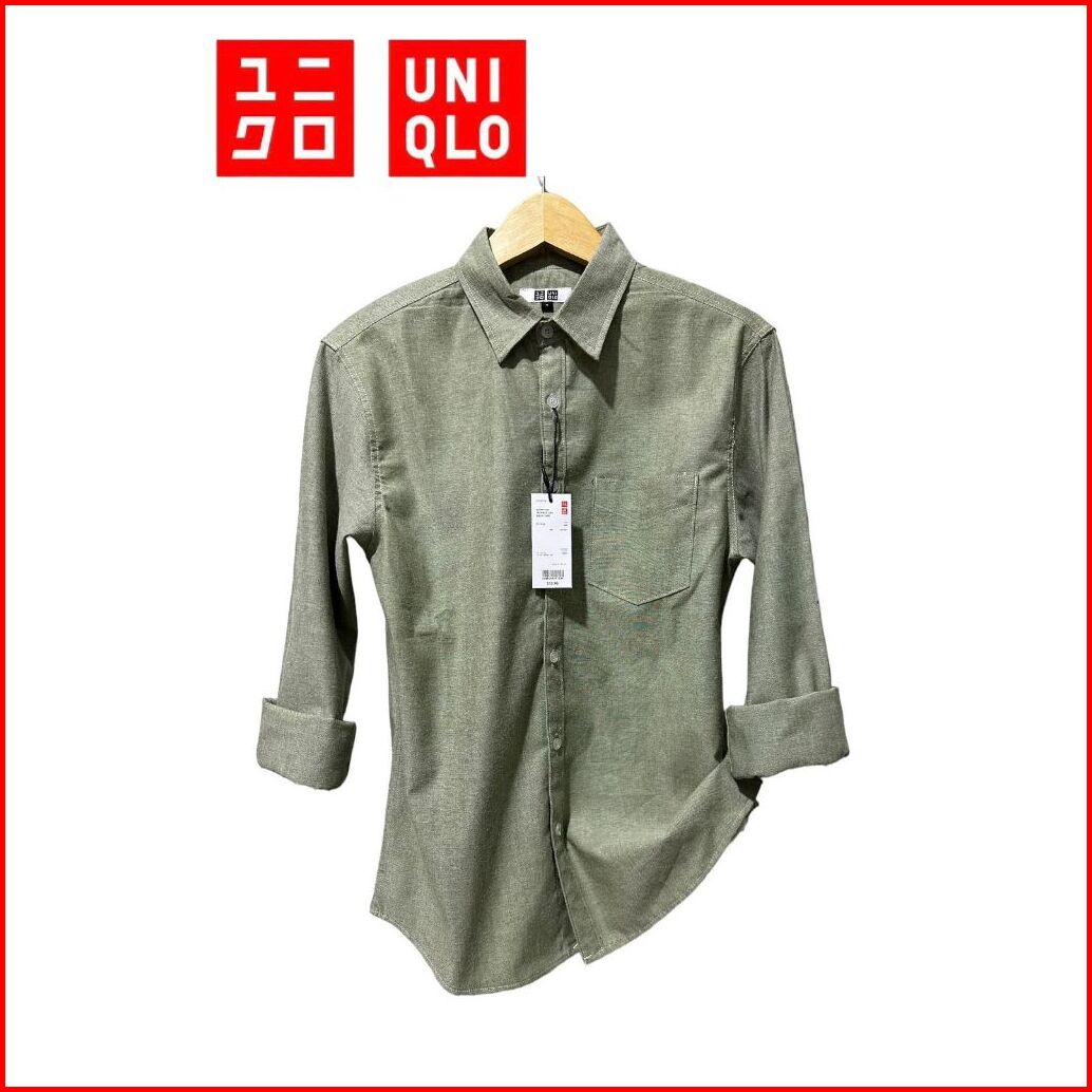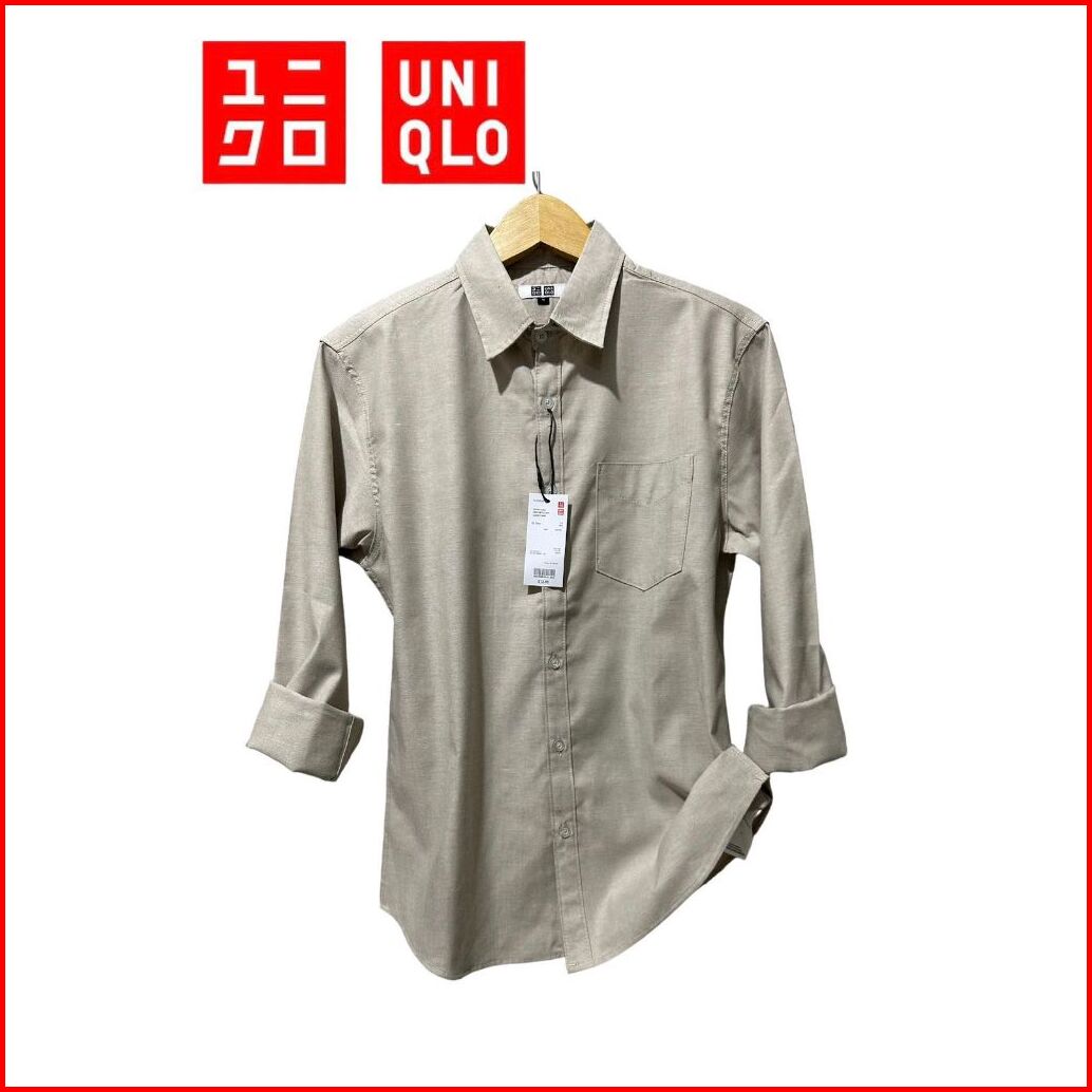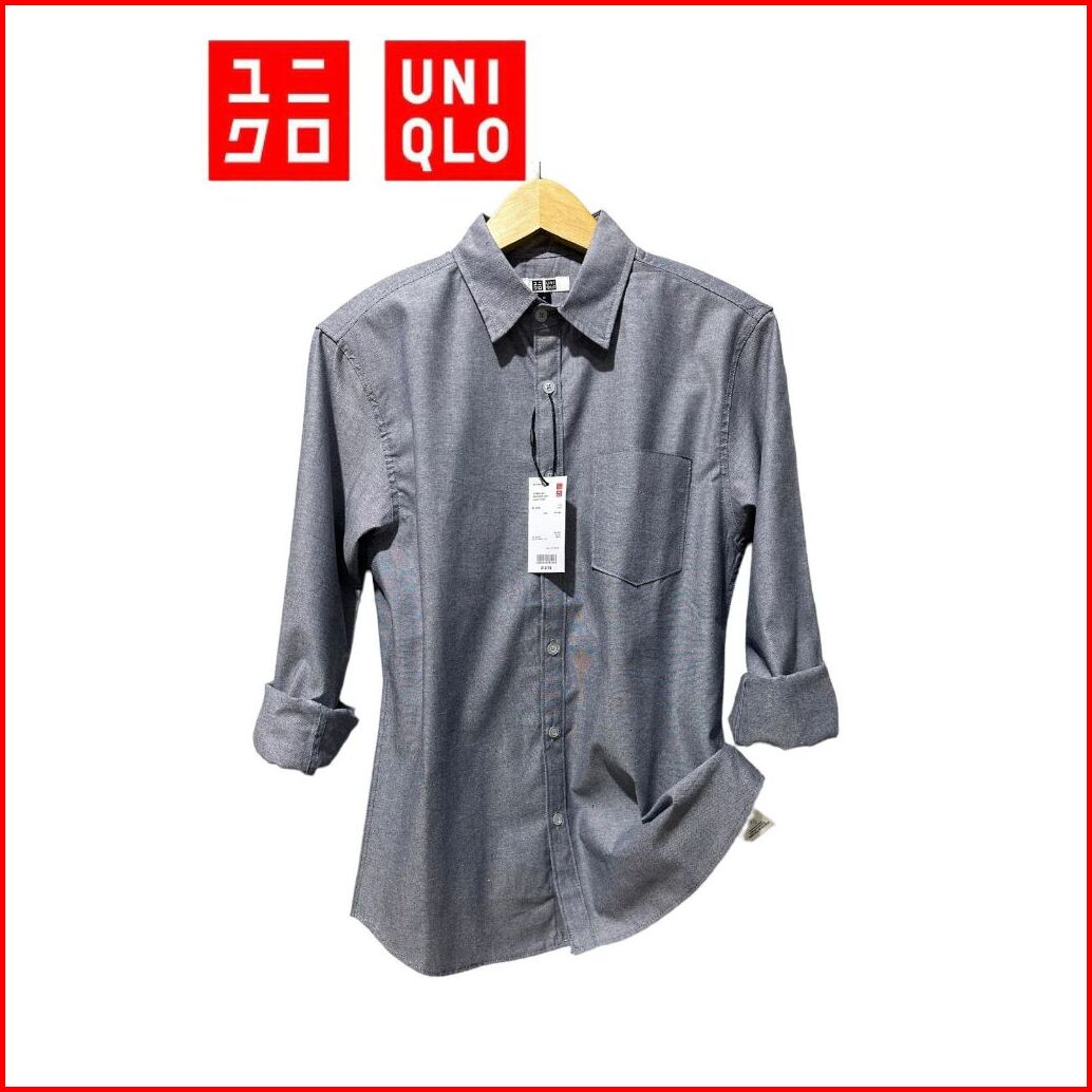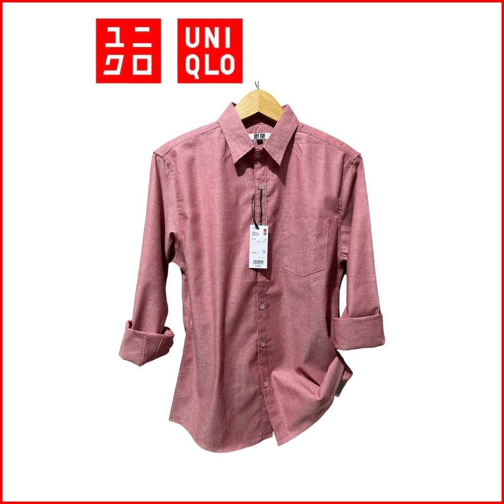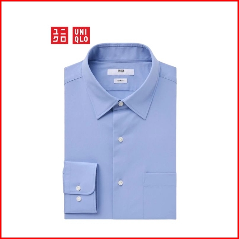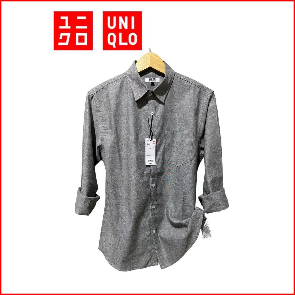Uniqlo Kemeja Pria Hitam Polos Lengan Panjang Slim Fit