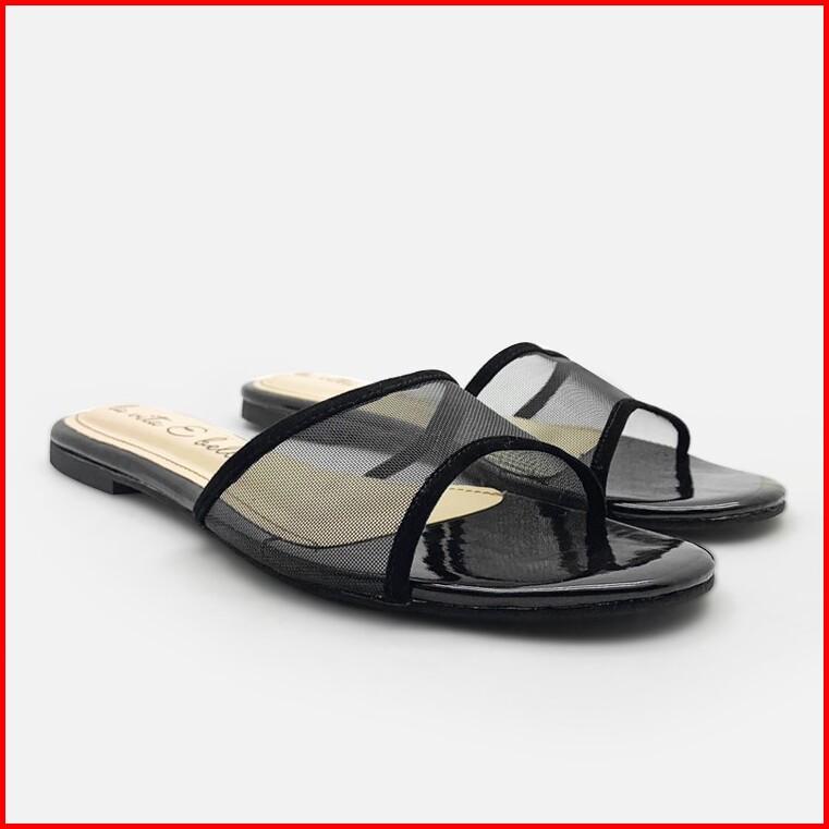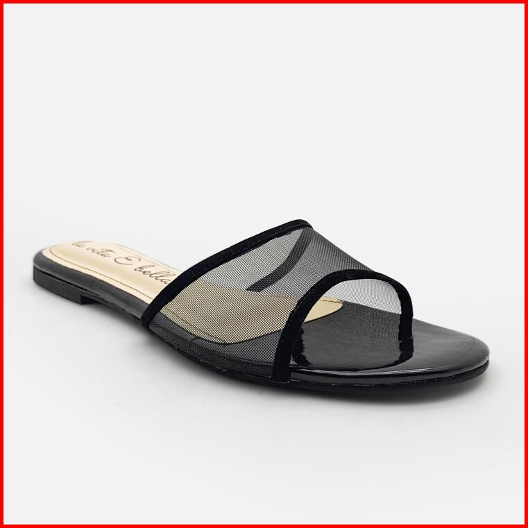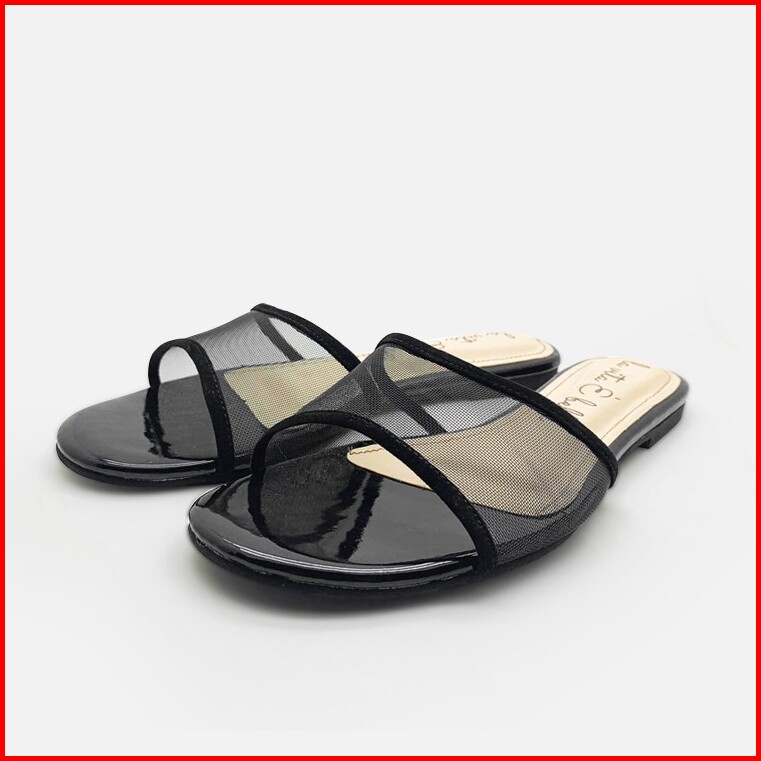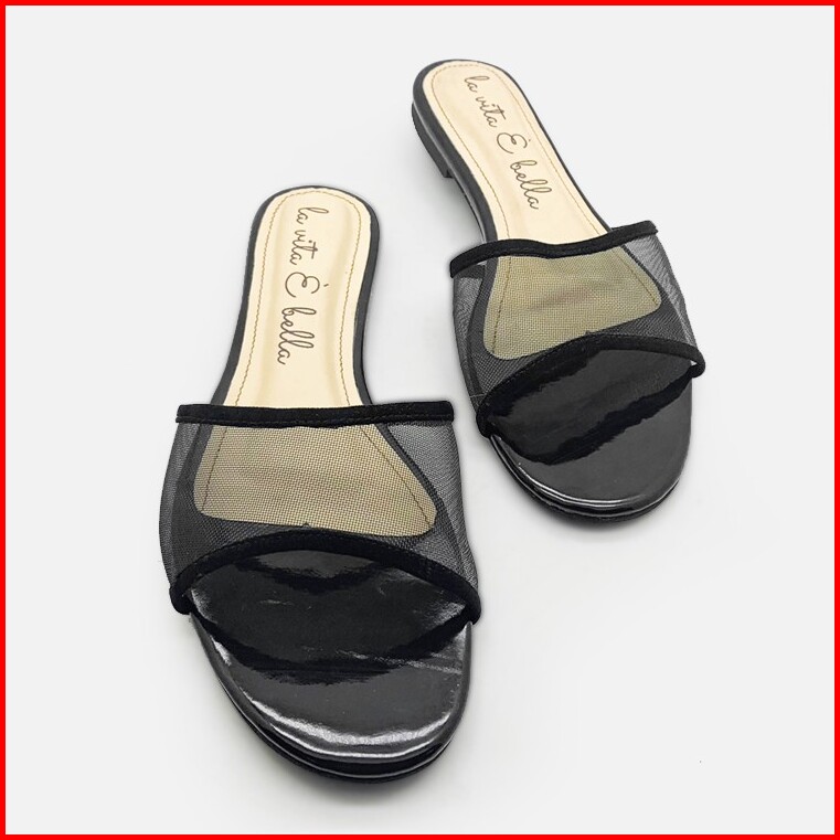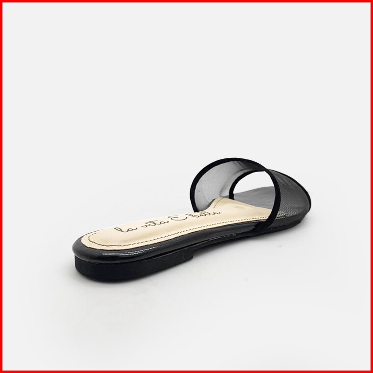 La Vita E Bella Audrey Sandal Flat Teplek Slip Wanita Bahan Mesh Transparan Lp 518 - Black