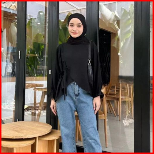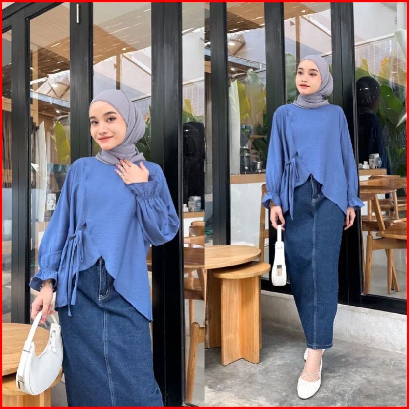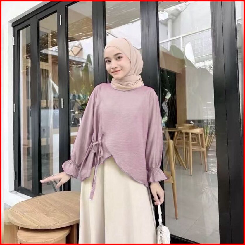 Blouse Crinkle Airflow Belah Depan Tali Samping Lengan Panjang - Lenra