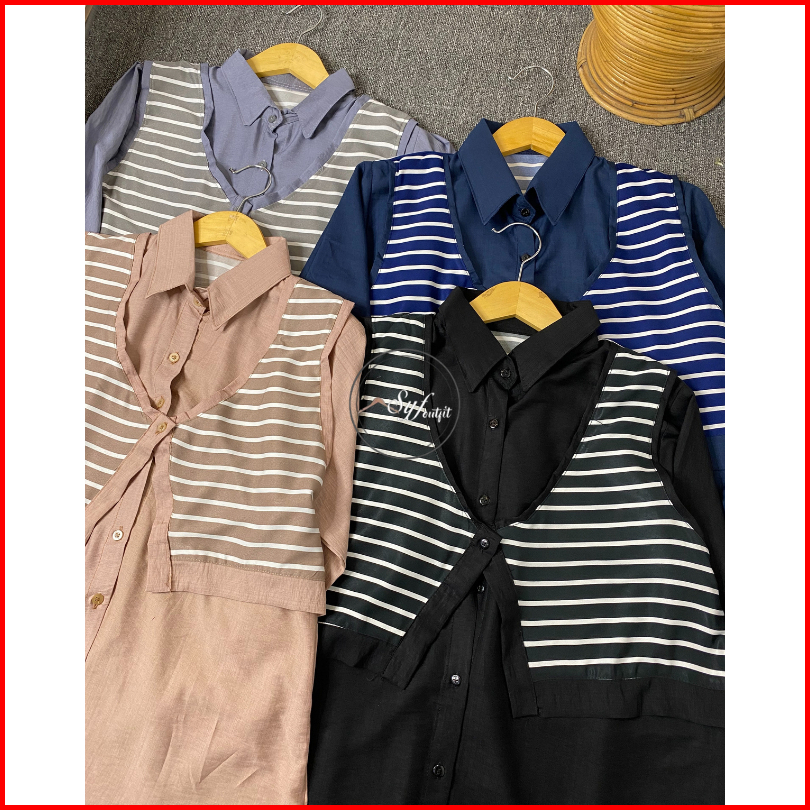 Aqila Kemeja Pollo Linen Kombi Salur