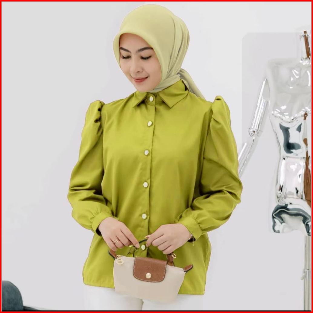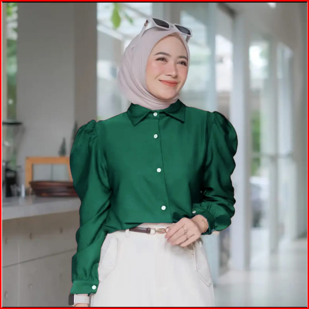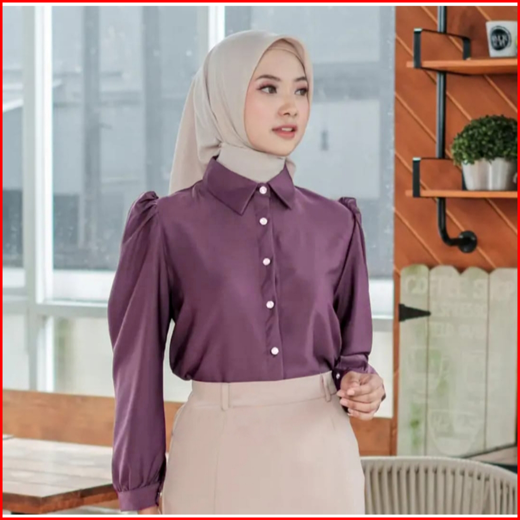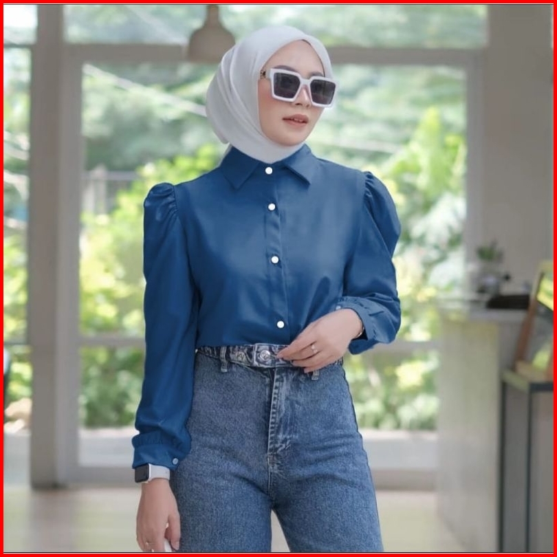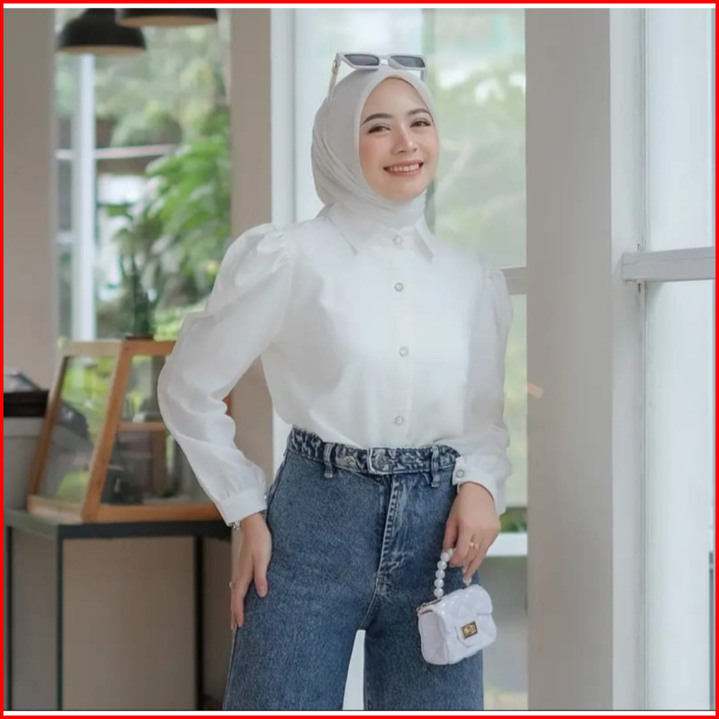 Qyla Bella Kemeja Puffy Blouse Atasan Wanita Panjang Katun Soft