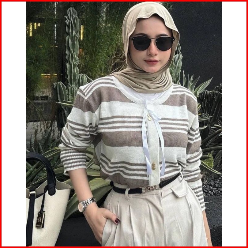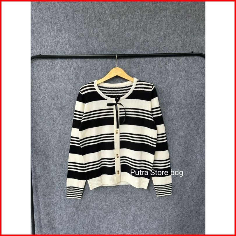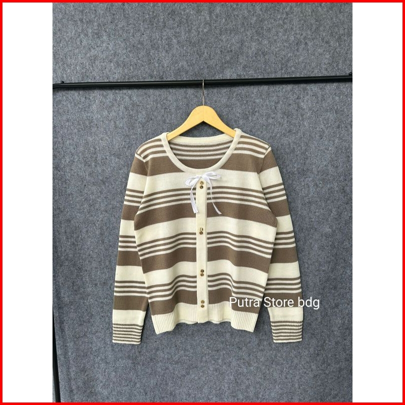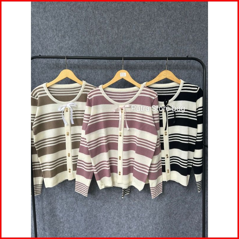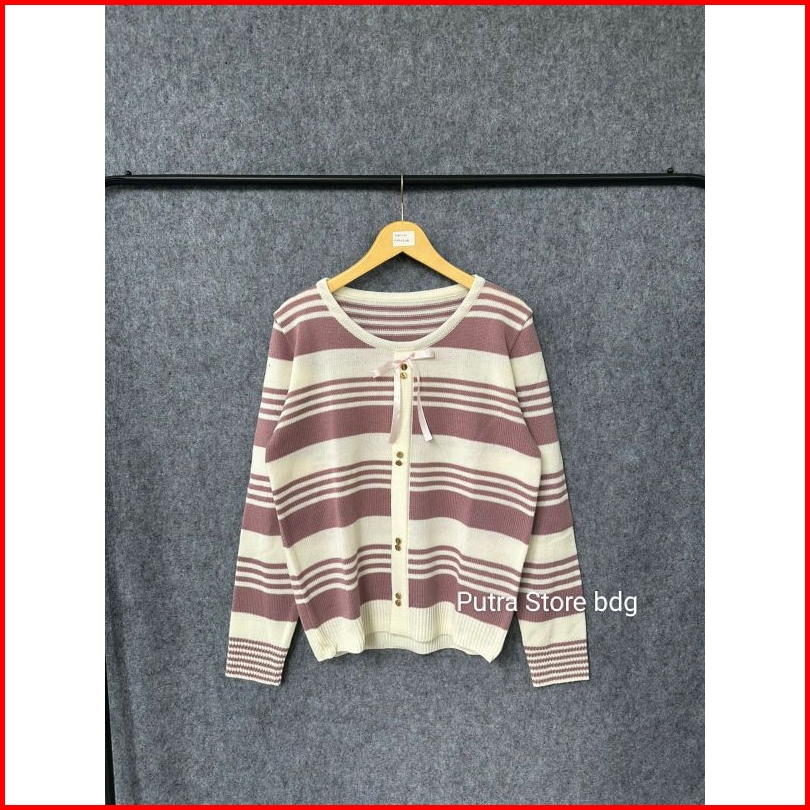 Luna Blouse Rajut Wanita Motif Garis Dengan Pita - Atasan Wanita