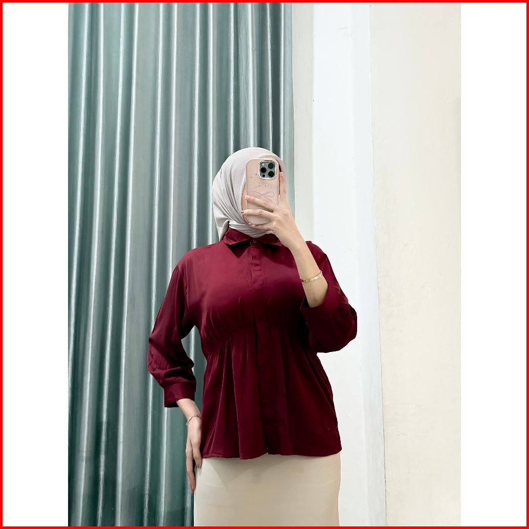 Fa.mistar Kemeja Wanita Alya Shirt Model Kerut Bagian Perut Rayon Twill