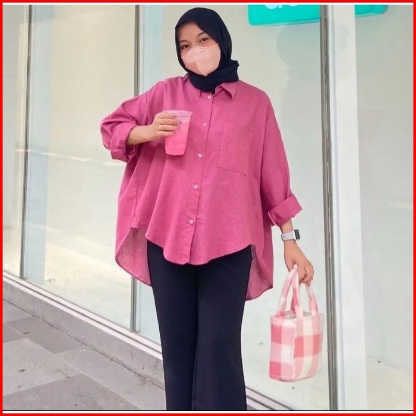 Kemeja Linen Oversize - Kemeja Wanita Oversize Ld 130cm