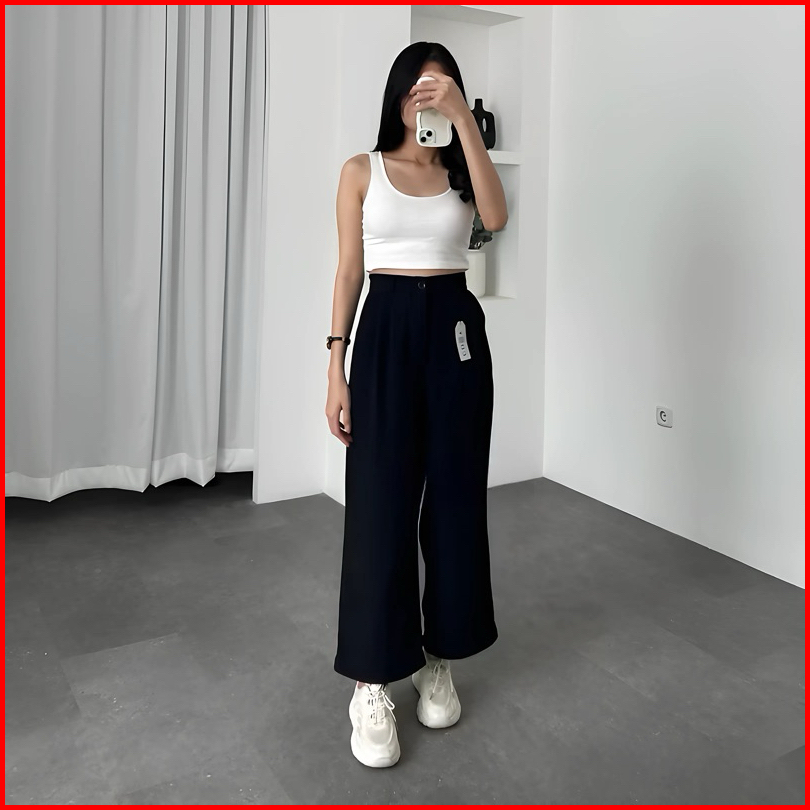 Loose Pants Trousers - Celana Kulot Anti Kusut Premium - Celana Kulot Wanita - Celana Wanita Highwaist - Celana Panjang