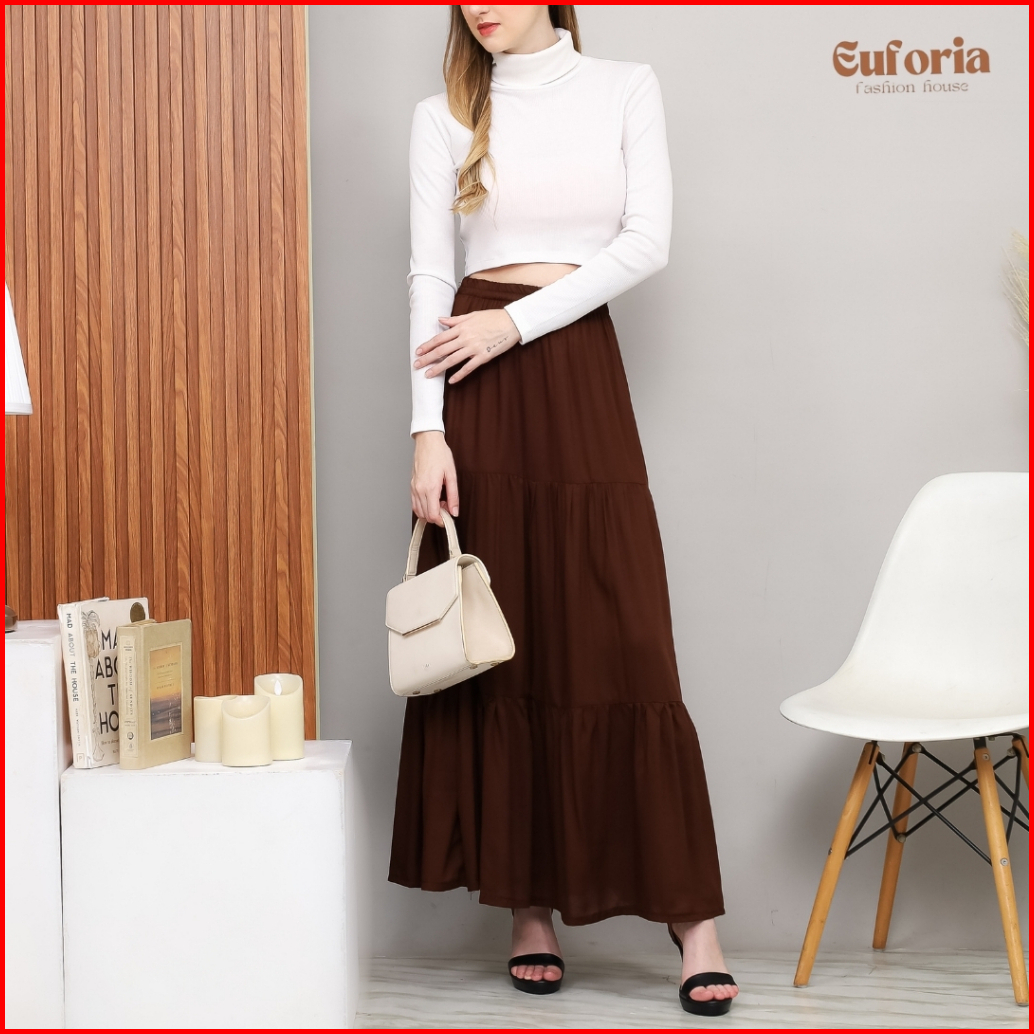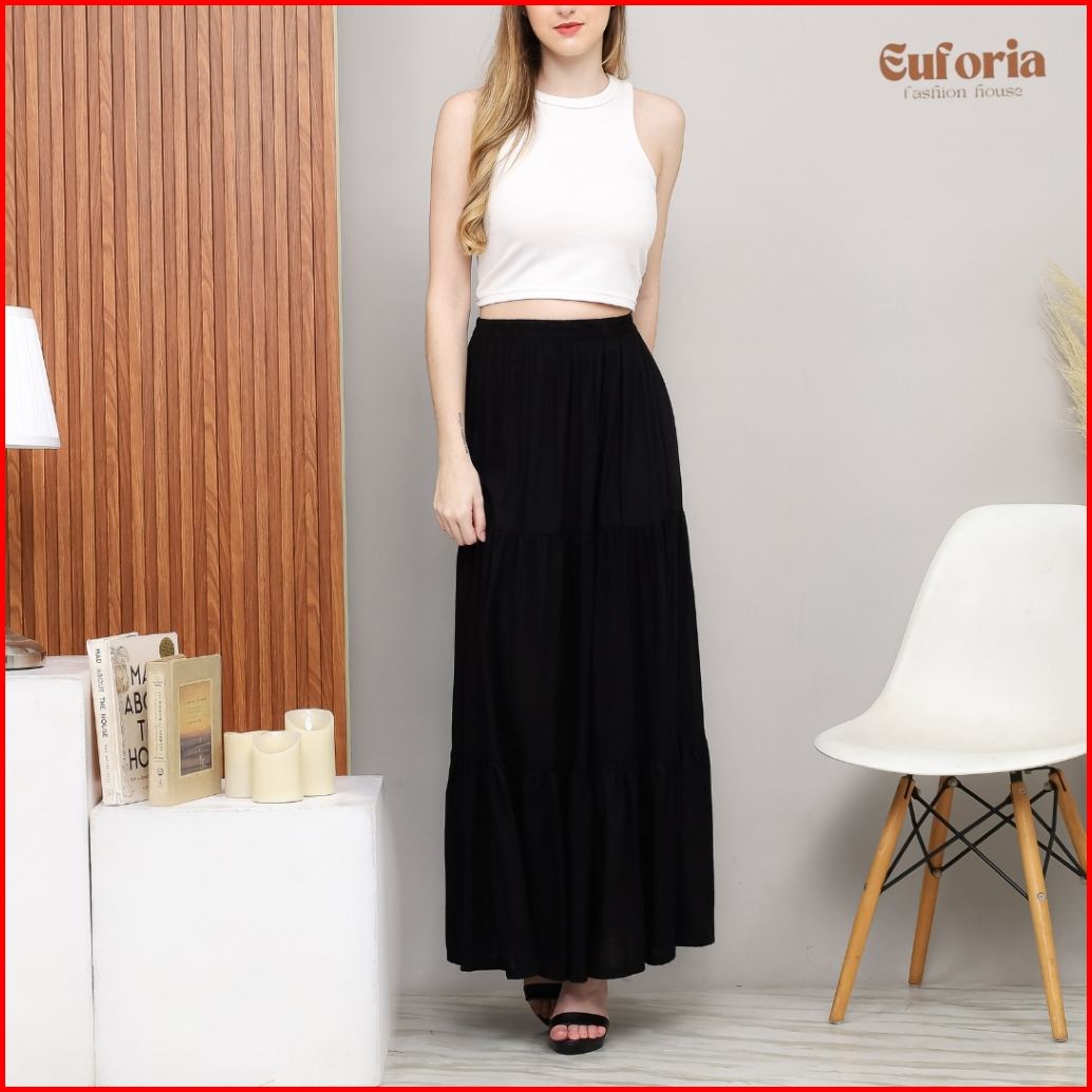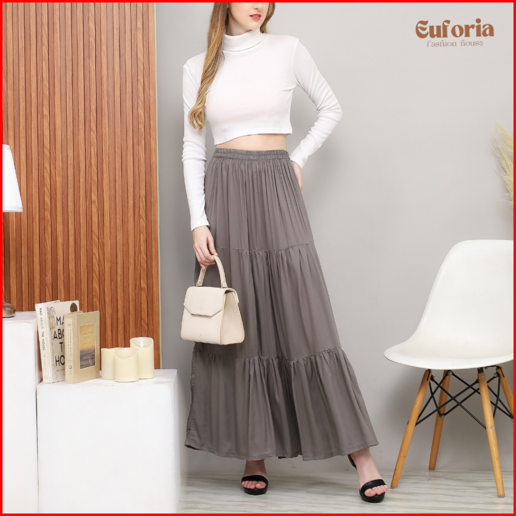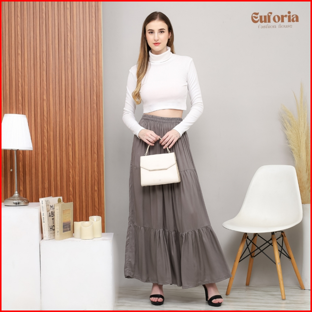 Ima Skirt Rok Wanita Korean Style Rok Flowy Casual Wanita Bawahan Wanita Panjang Rok Remaja Kekinian Rok Wanita Katun Ra