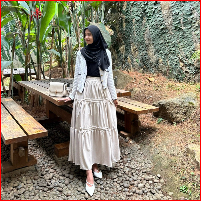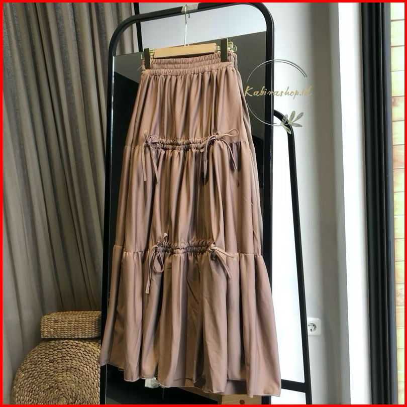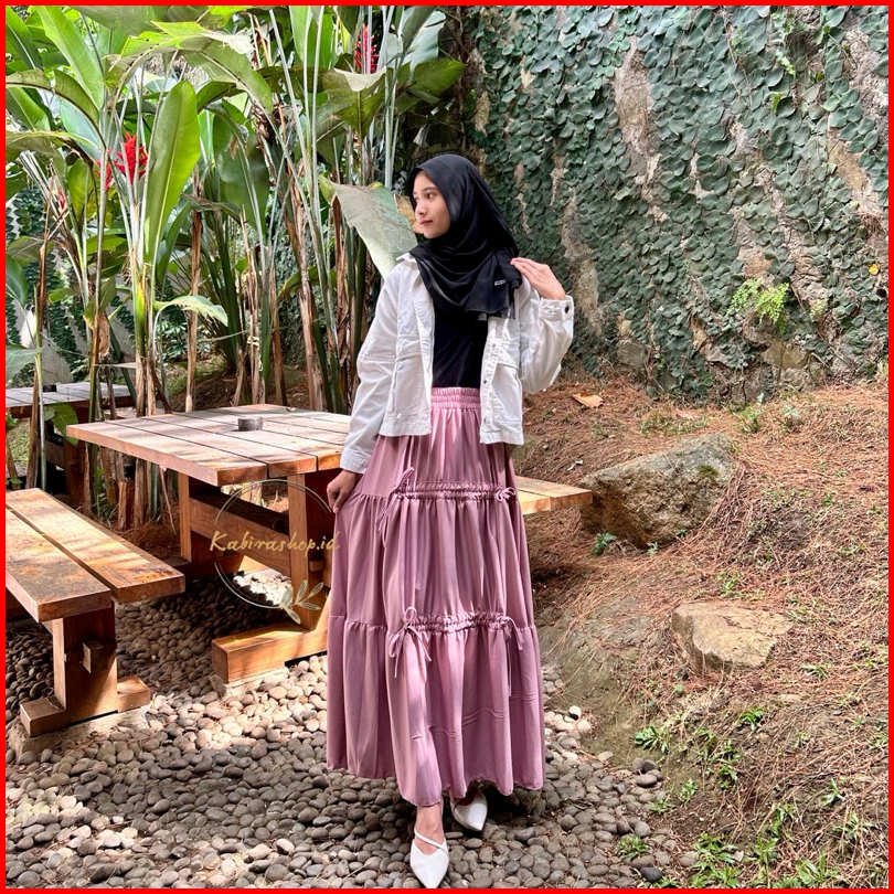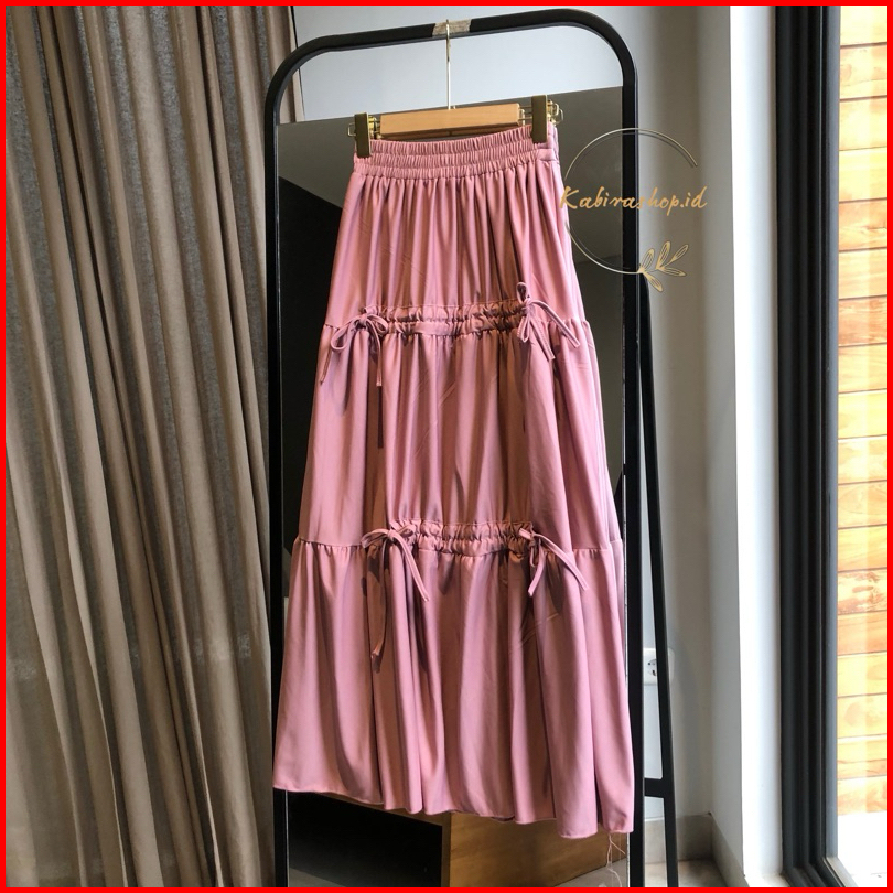 Rumi Skrit - Rok Serut Tali Pita Premium Skirt Korean Style Bawahan Wanita Coquette Skirt 3 Susun