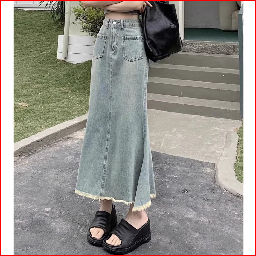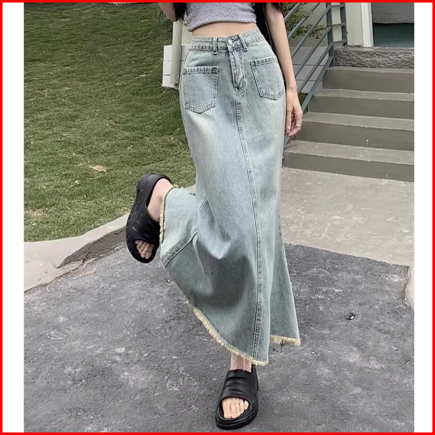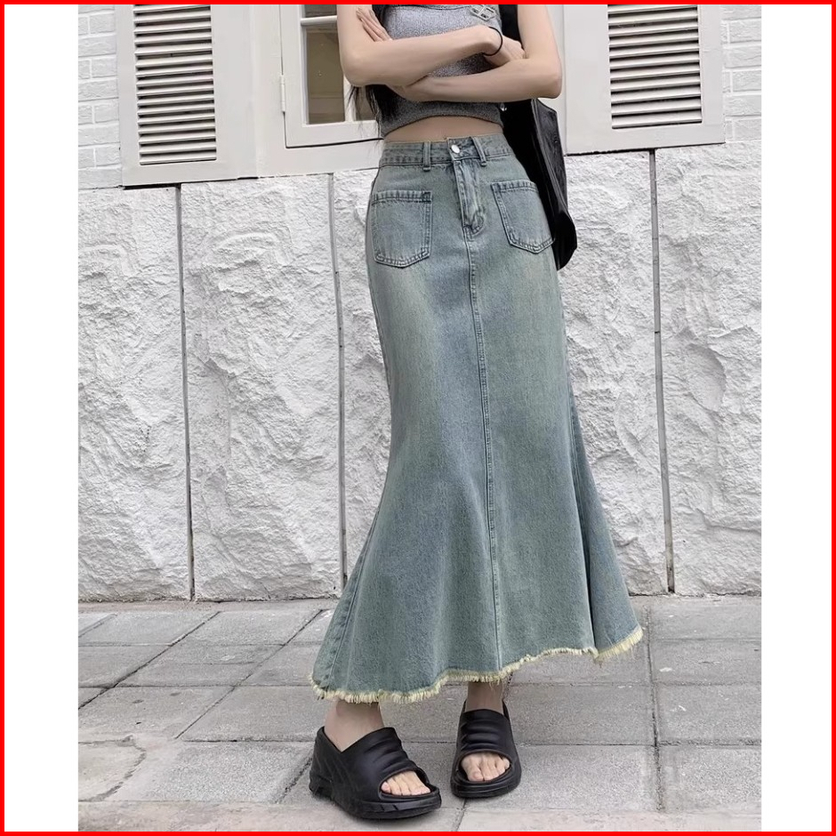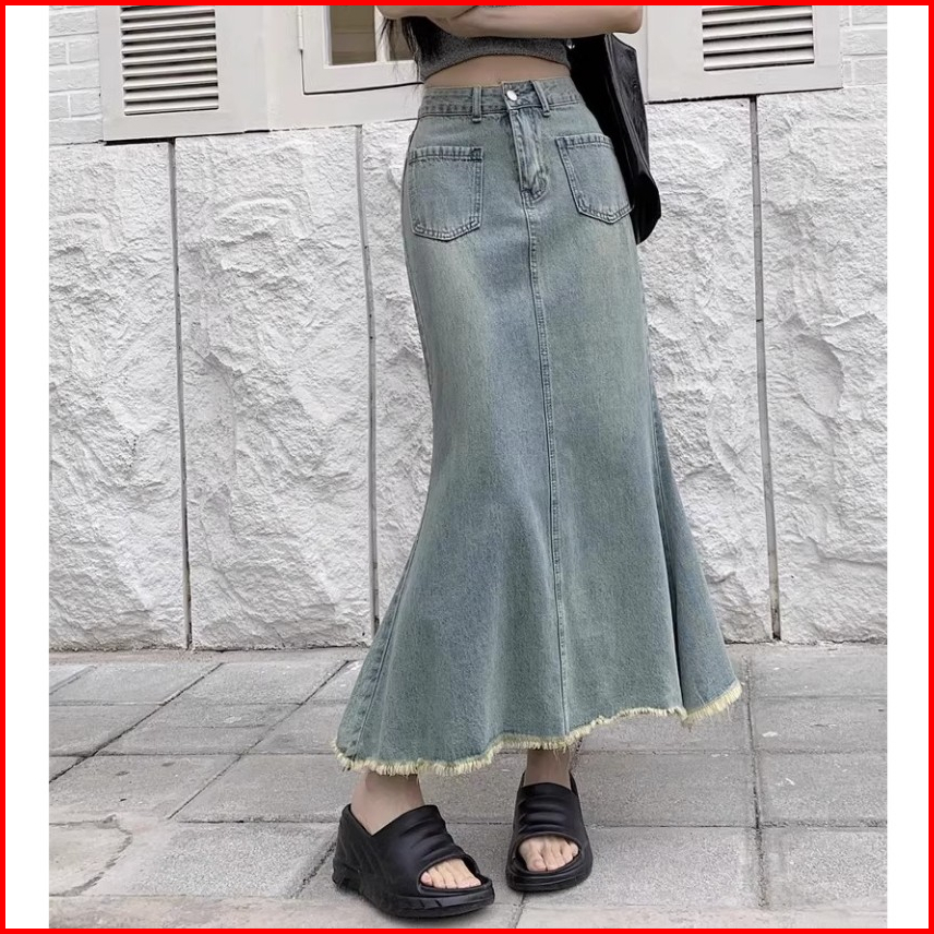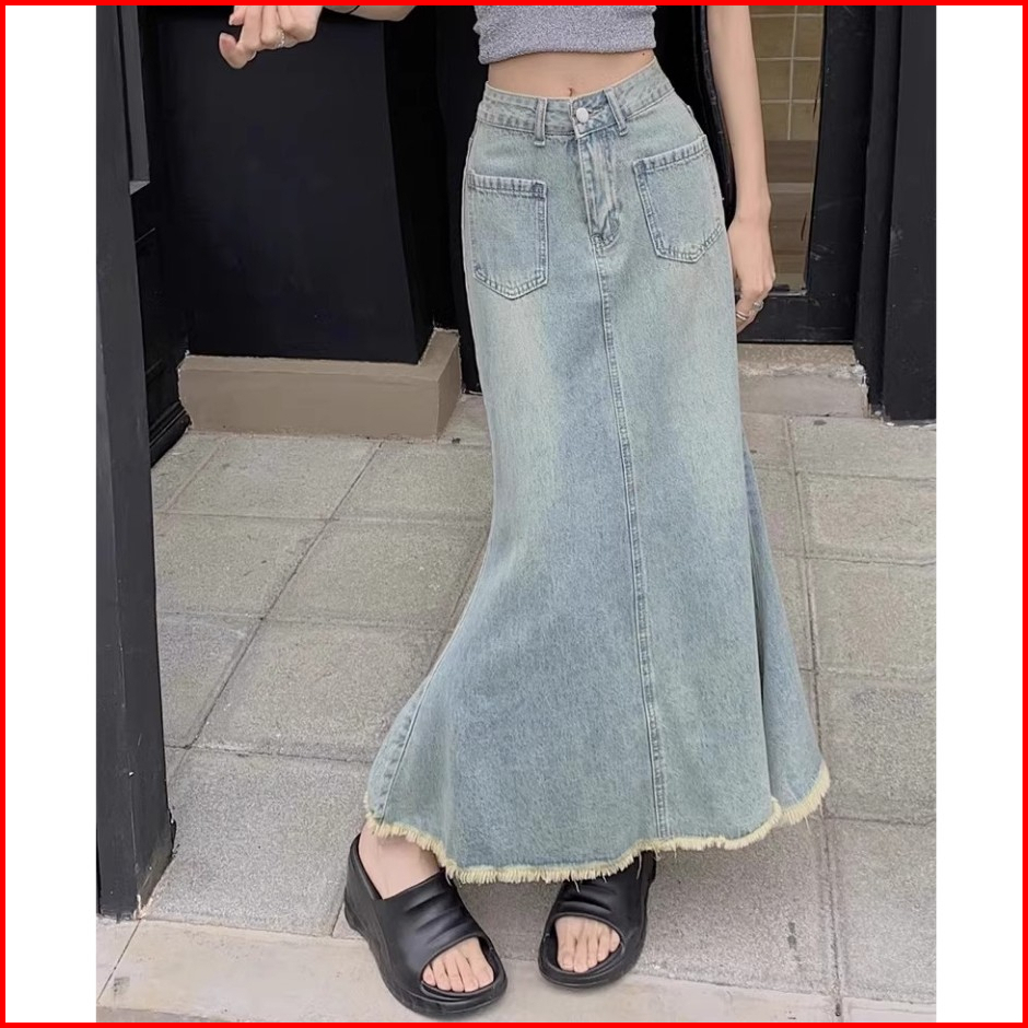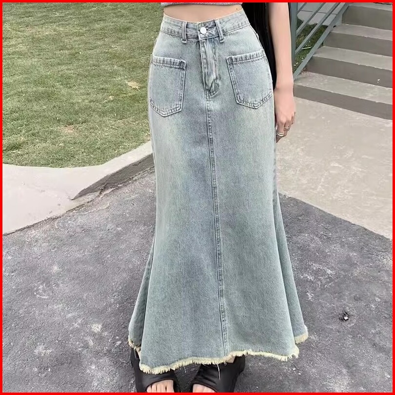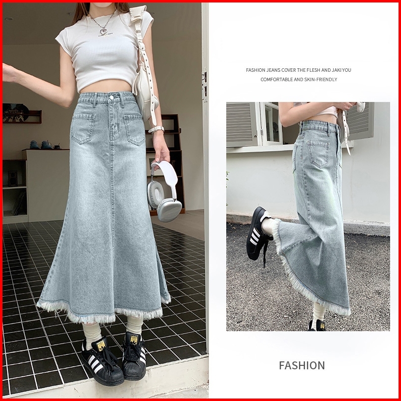 Boll.idmermaid Skirt Jeans Wanita Jumbo Rok Korean Style Rok Jeans Panjang Highwaist Duyung Rok Wanita Kekinian