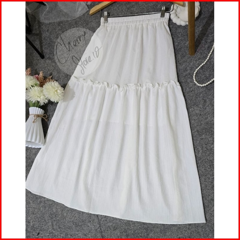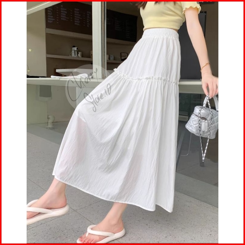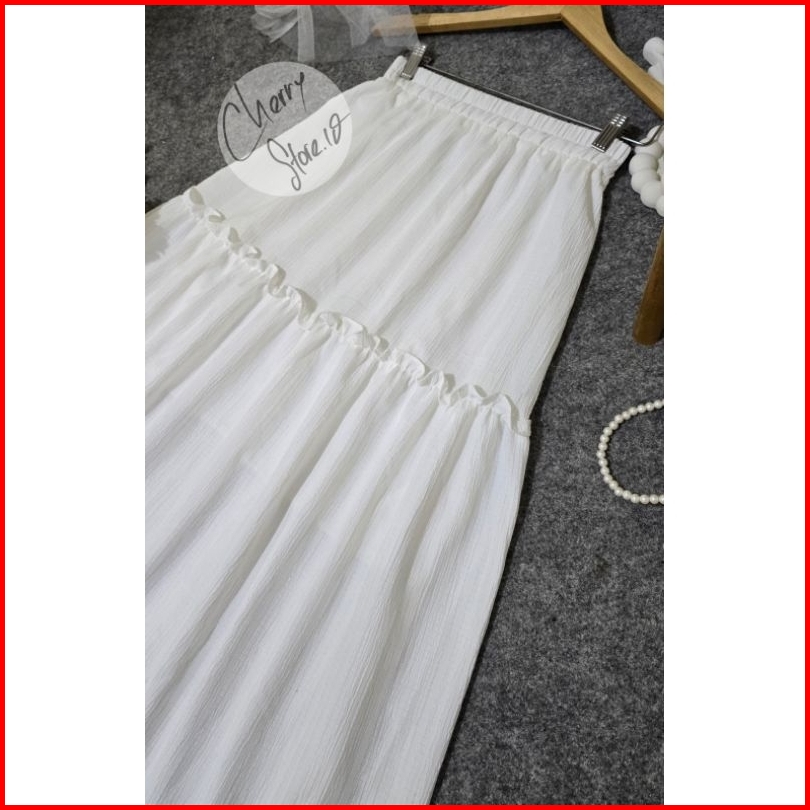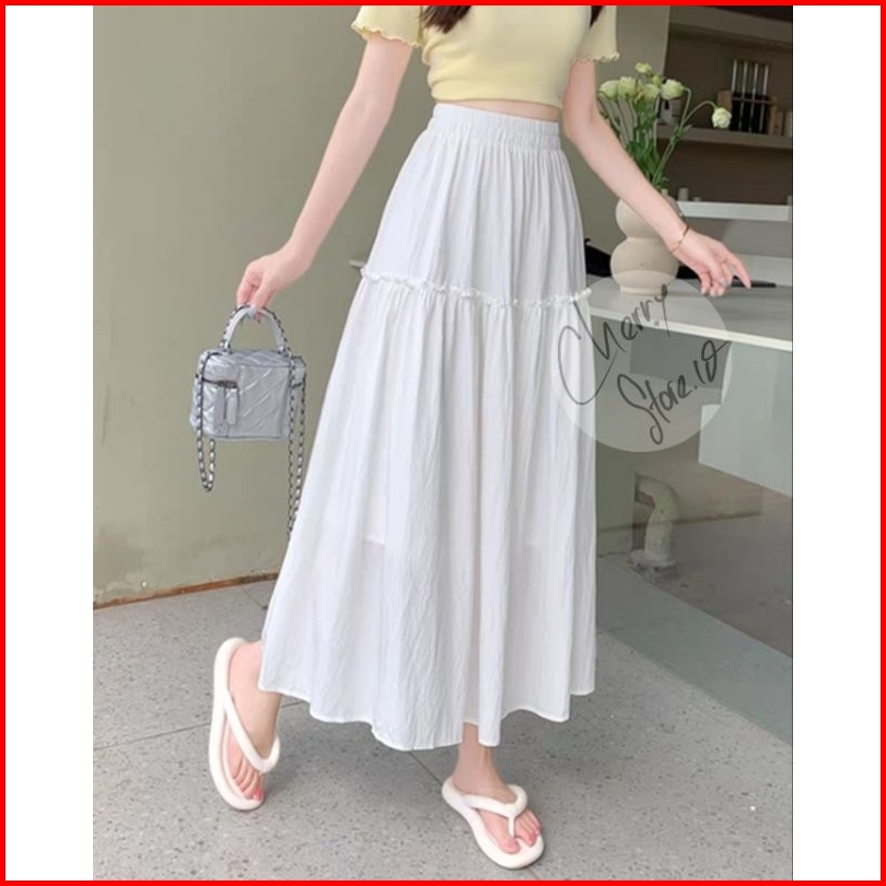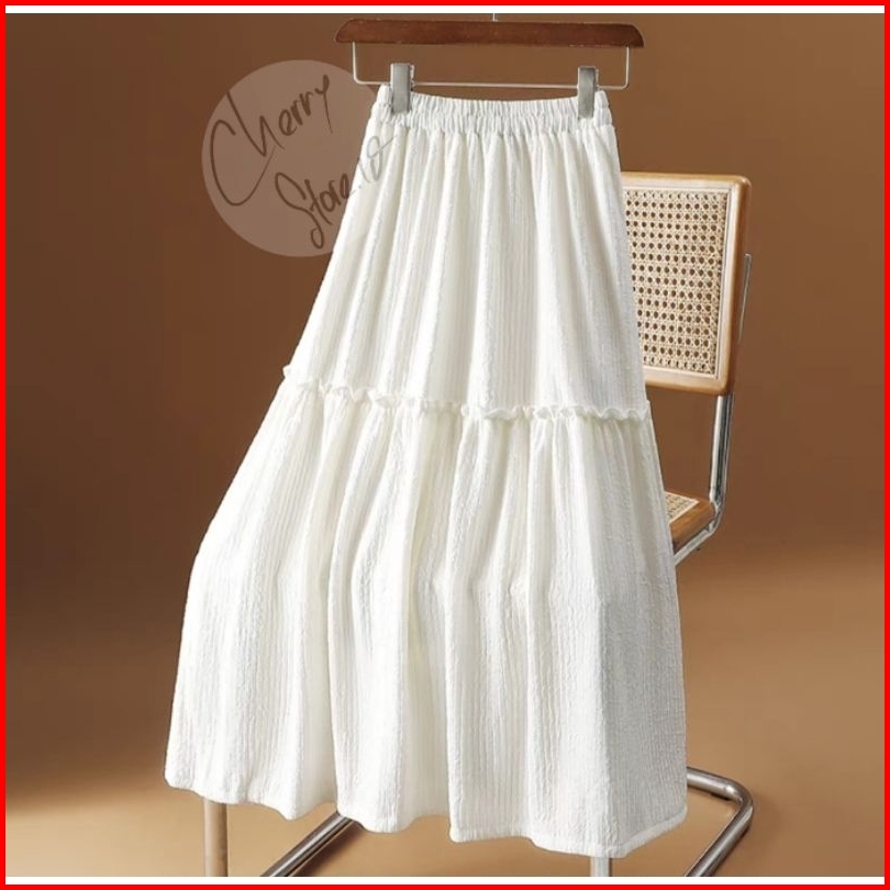 Cherry Lady Long Skirt Korean Style Rok Panjang Wanita Terbaru Rok Susun Ruffle Kd11
