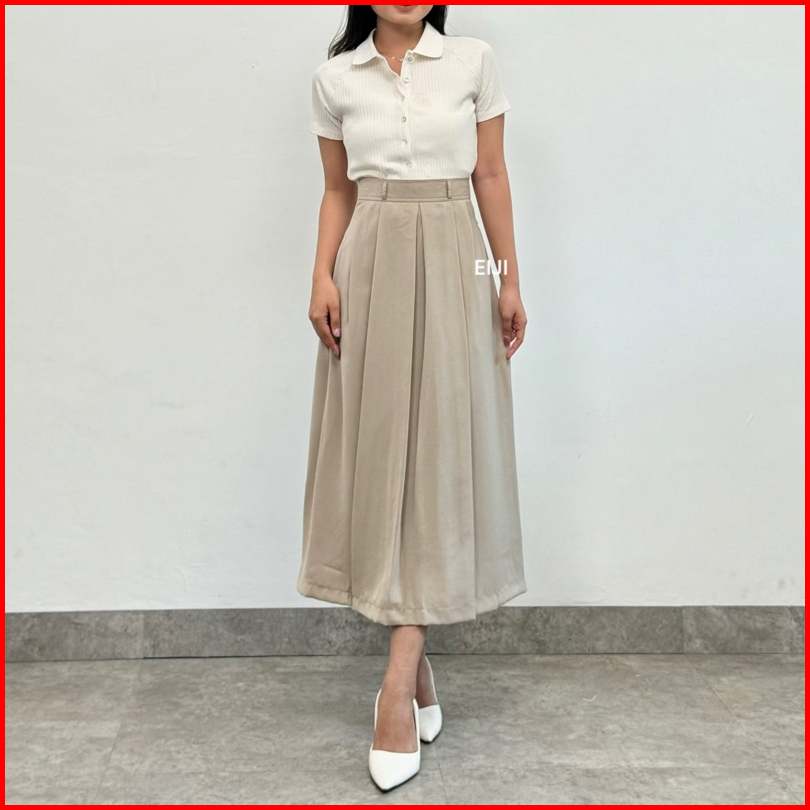 Eiji - Kamari Skirt - A Line Midi Skirt Bawahan Korean Loose Polyester
