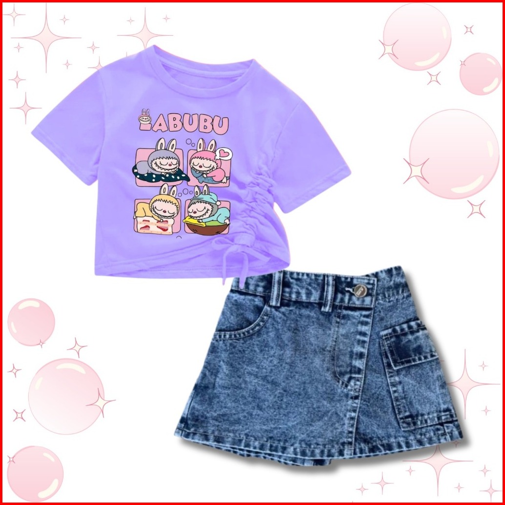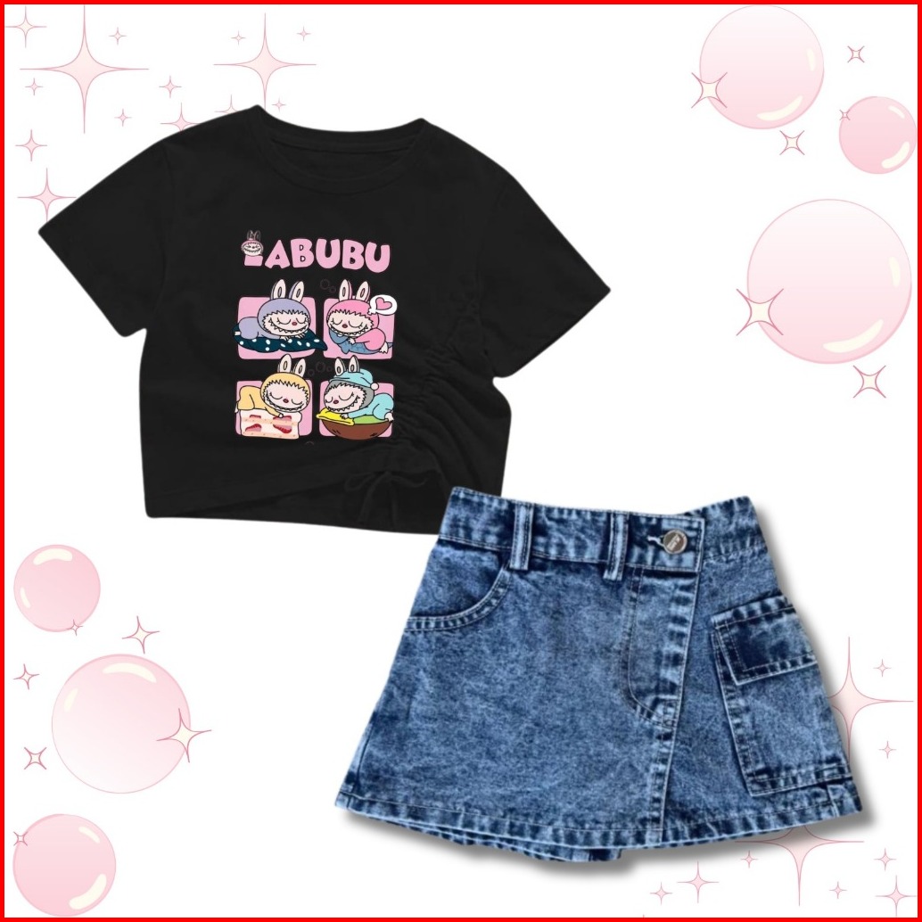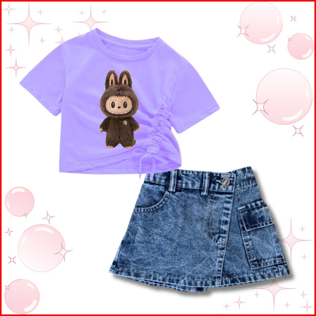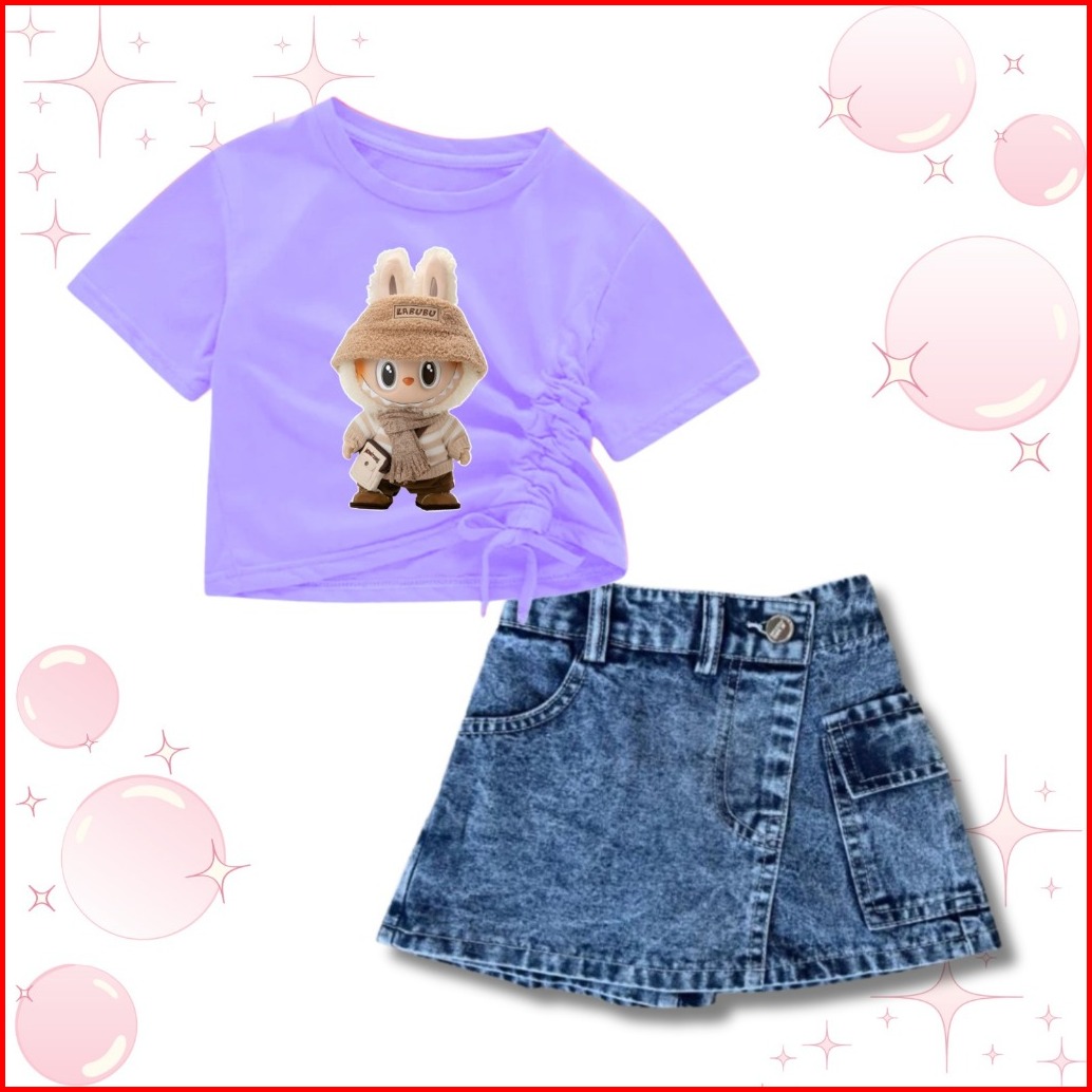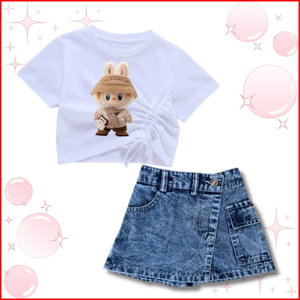 Setelan Rok Kargo Jeans Rokcel Anak Perempuan Motif Labubu