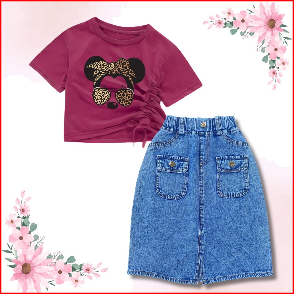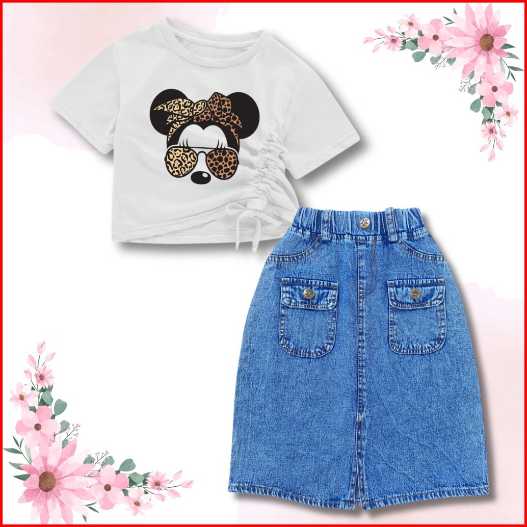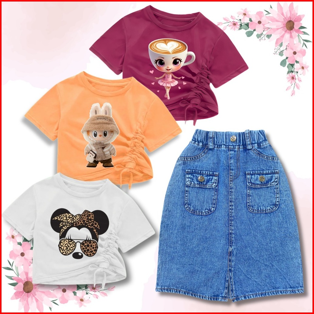 Setelan Rok Jeans Panjang Saku Depan Anak Perempuan 1-12 Tahun