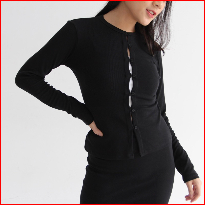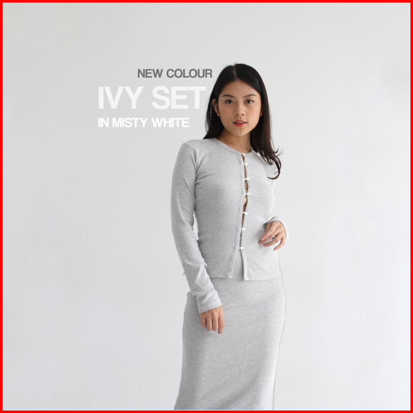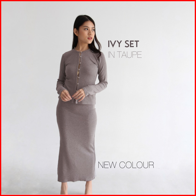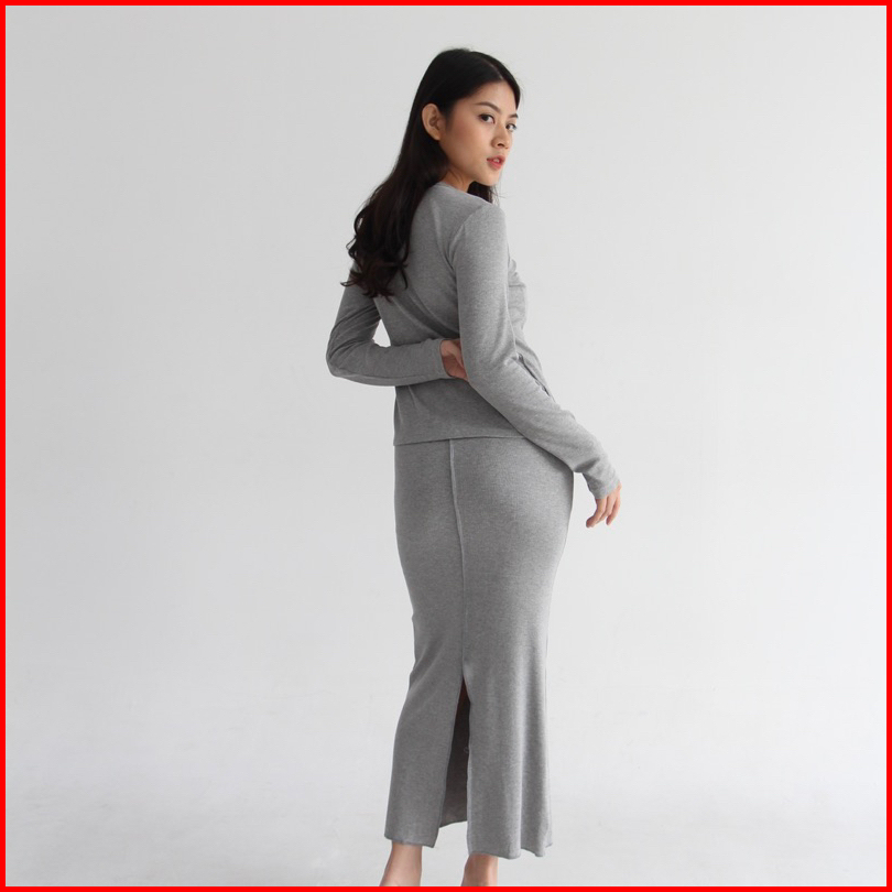 Ivy Set - Setelan Skirt Wanita Longsleeves Knit Set Top Oneset Rok Wanita Ribbed Knit Atasan Tangan Panjang Wanita Soma