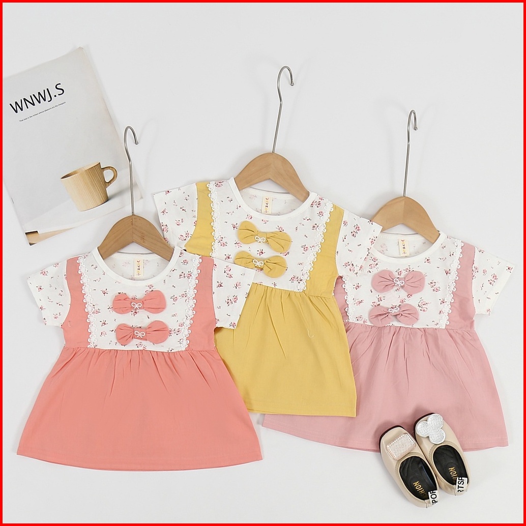 Dress Anak Perempuan Import With Bunga Bow Motif - Gaun Bayi Dan Anak Perempuan